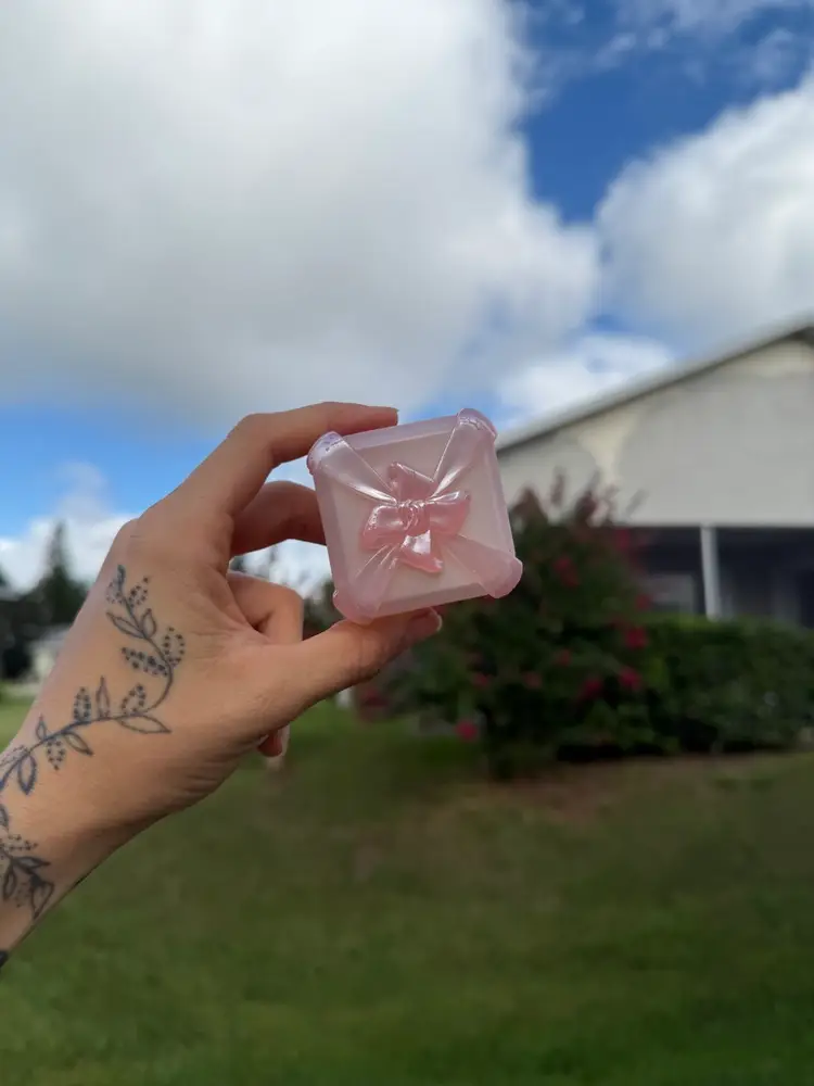 Good preloved condition, it is super cute & delicate with a 3D bow tie on the front! It has a little cushion in there!