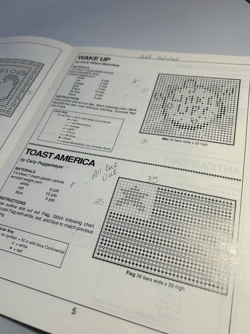 See first 2 photos of front and back cover for project examples, enlarge all photos for age and use.
