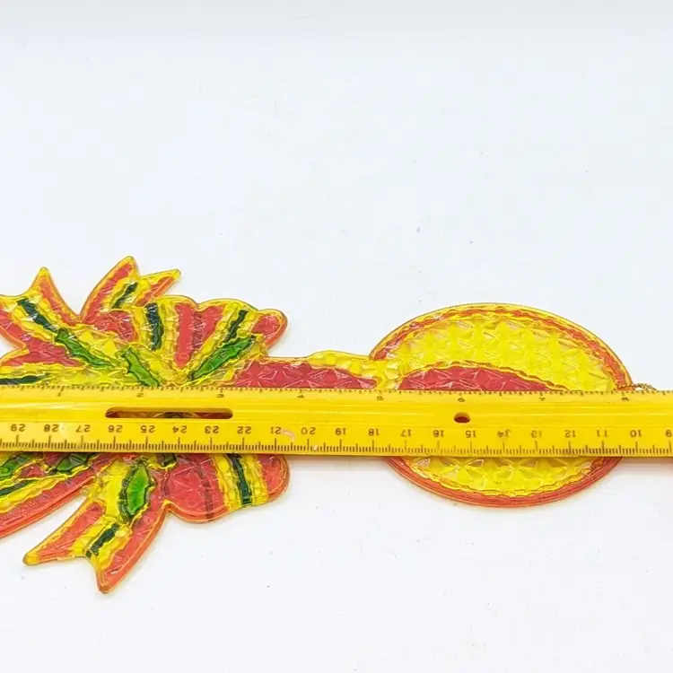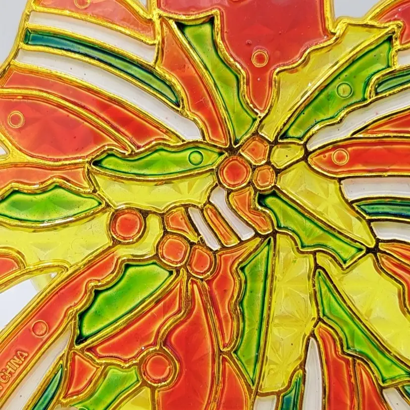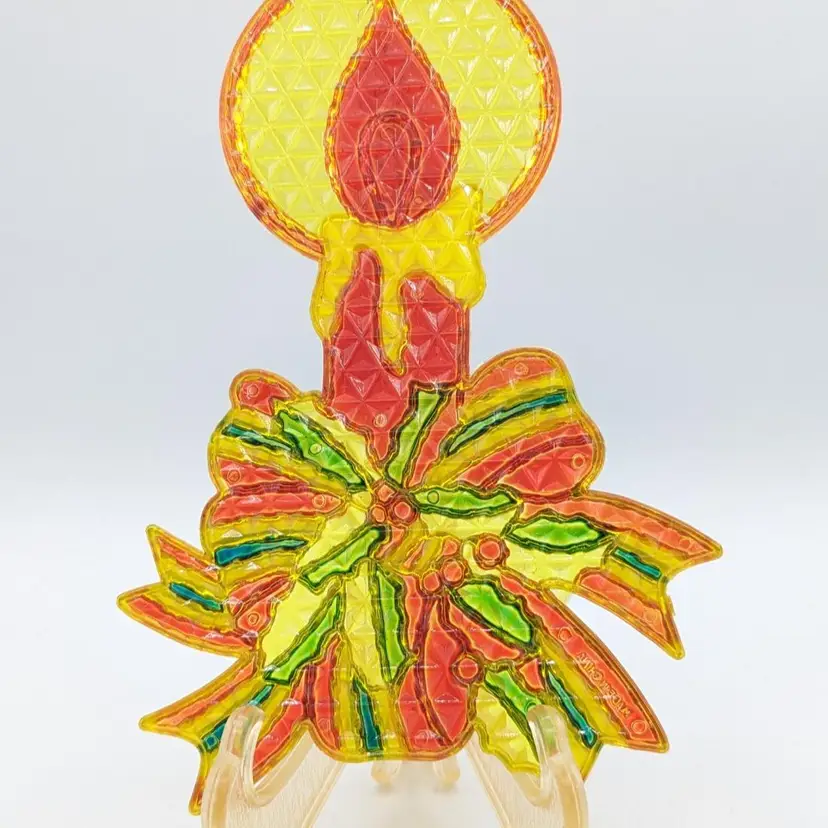 This vintage plastic Christmas decoration is sure to add a festive touch to your home this holiday season! The charming sun catcher features a lit candle with holly berries and leaves, perfect for hanging on a wall or in a window. The decoration is made of durable plastic and has been gently used. TY 4