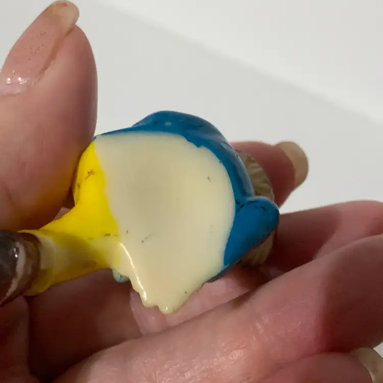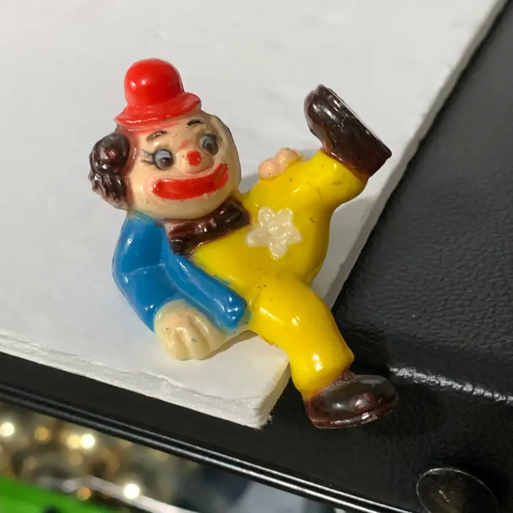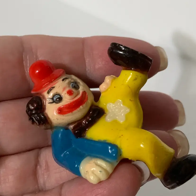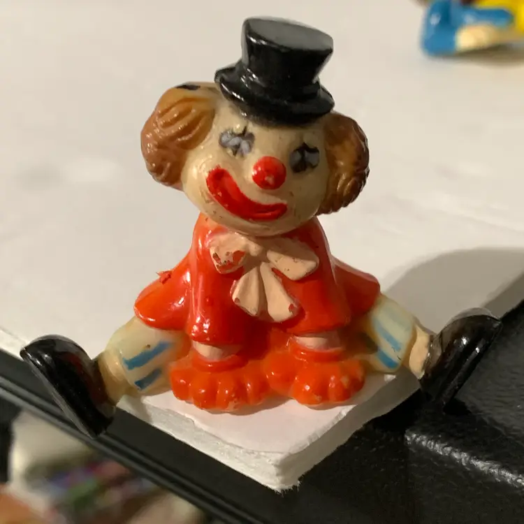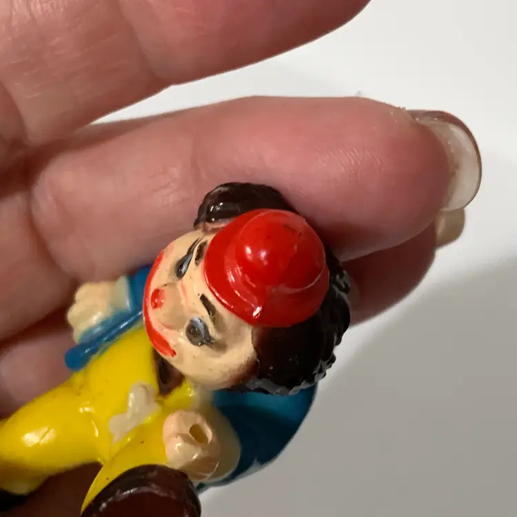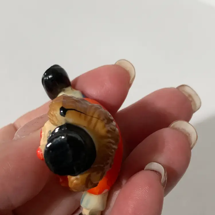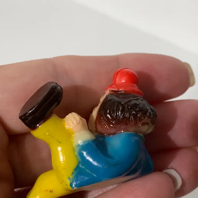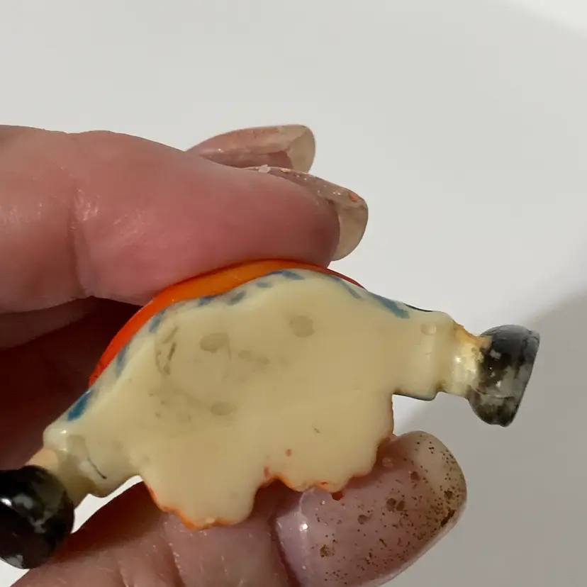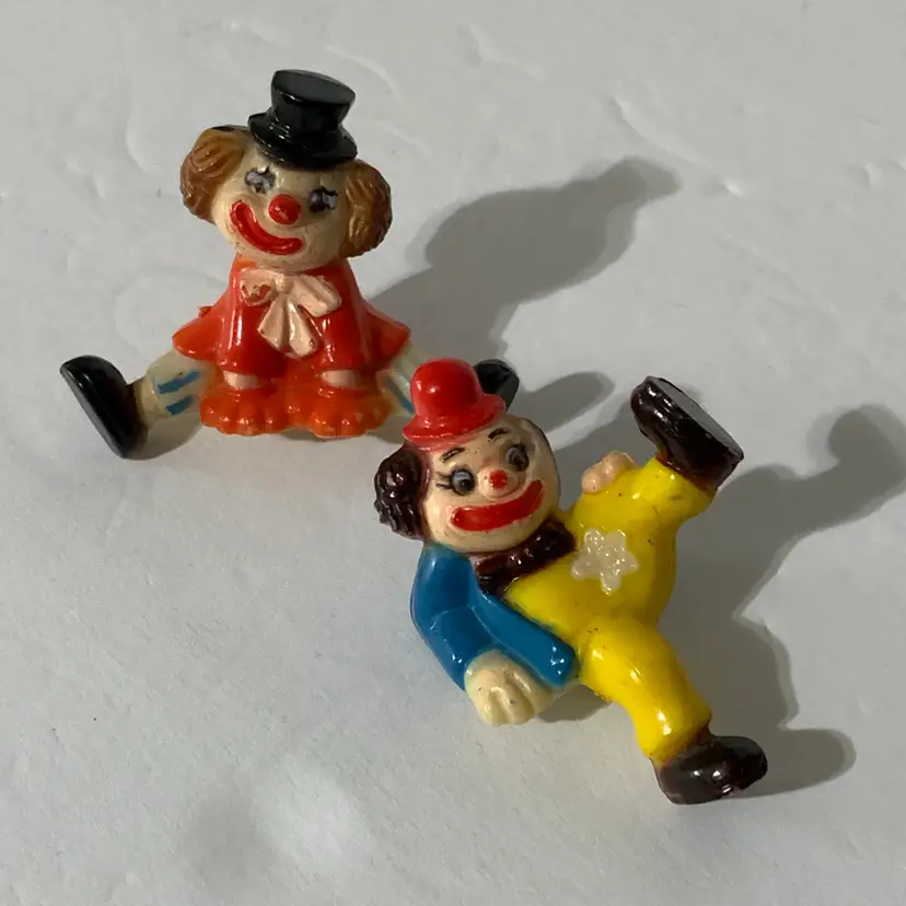 Includes both. These are in good condition. They will sit on the edge of a shelf or by themselves. No chips or cracks. The red one measures 2 1/4 inches across, 3/4 inches wide and 1 3/4 inches tall. The blue one measures 1 3/4 inches across, 1 1/4 inches wide and 2 inches tall. Weighs 1 ounce. If the actual postage ends up being less than what you paid, you will be refunded for anything over one dollar.