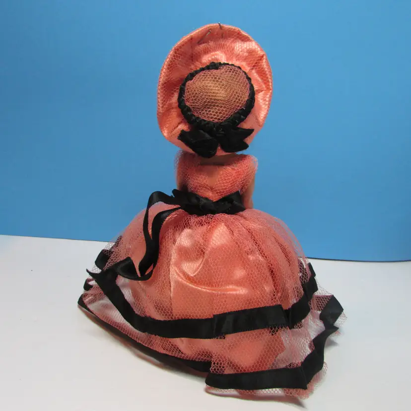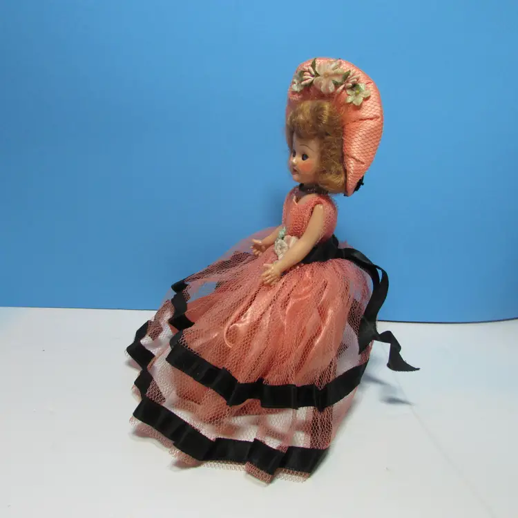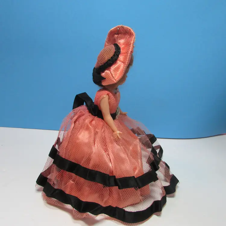 This adorable doll has some wear, her head feels a little loose. Still a nice piece to display, she is about 7" tall or 9" tall with hat and dress. This is shipped from a smoke free home. Thanks for looking!