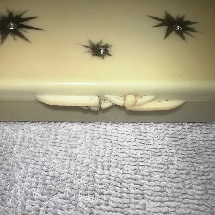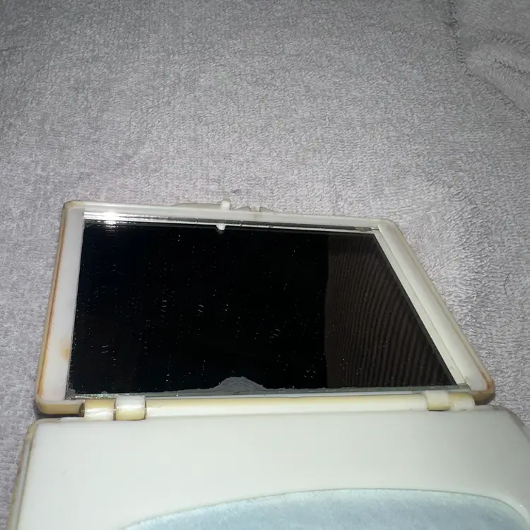 Vintage Plastic Hinged Mirrored Tissue Holder Atomic Pattern. Made in Hong Kong. Comes With Tissues. Great Vintage Piece. Smoke Free Home. #vintage #retro #tissueholder #hongkong