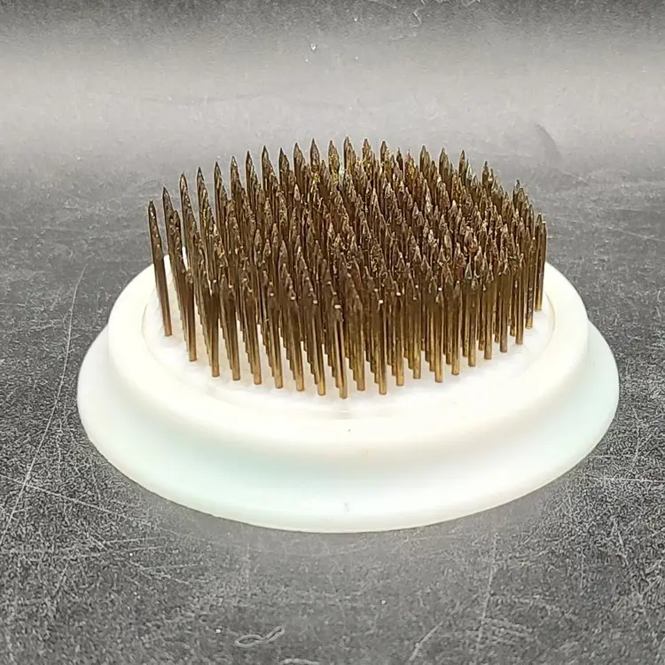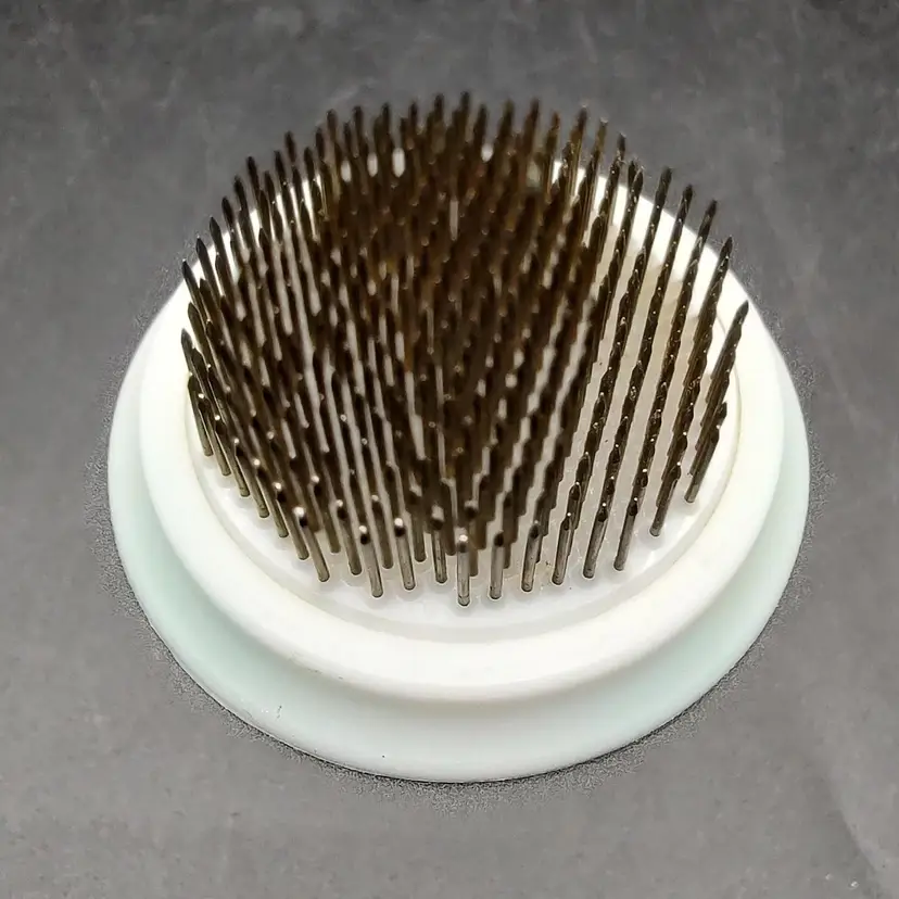 Vintage Plastic And Metal Spike Flower Frog in good condition height 1.5" x diameter 3".