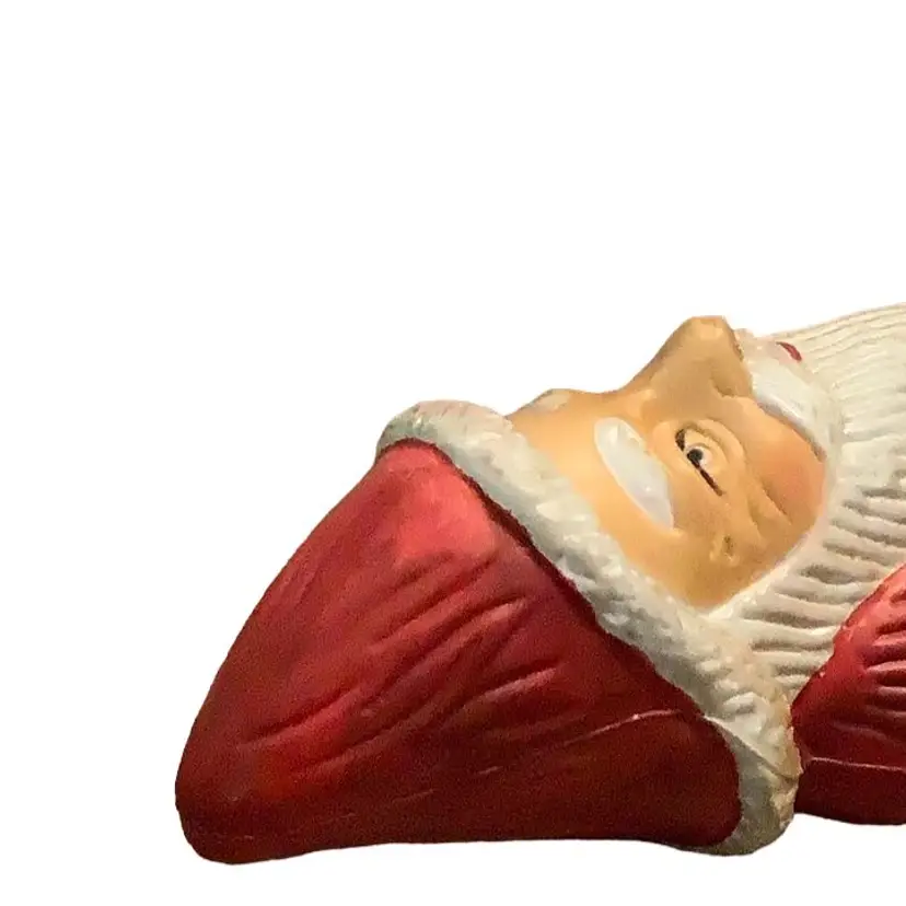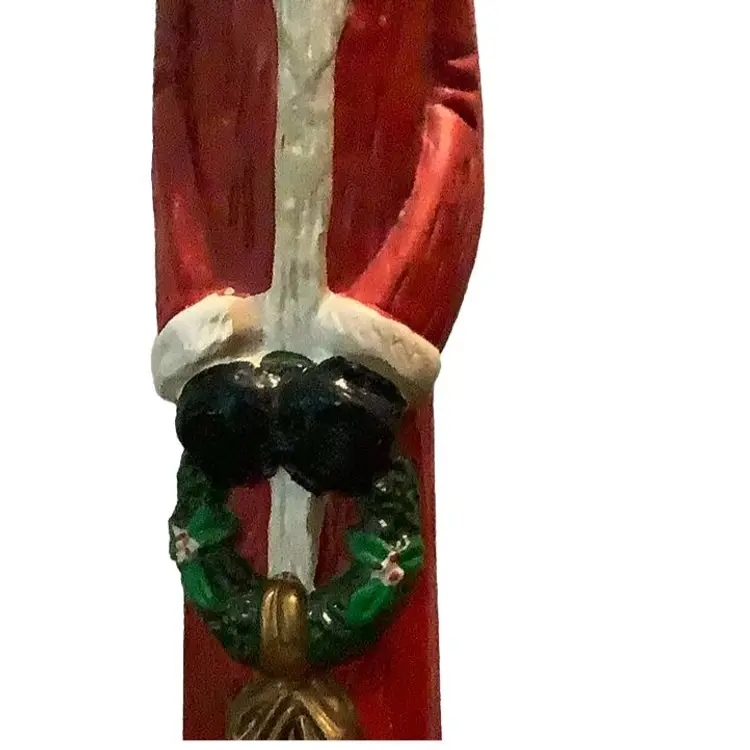 14” tall skinny pencil Santa Clause. Unbranded vintage Santa has hole in the bottom plastic otherwise shows normal wear.