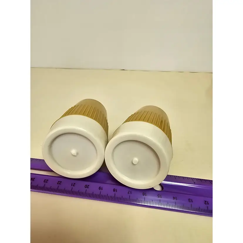 Vintage Plastic Shaker set, mustard yellow and white. No cracks no chips no markings