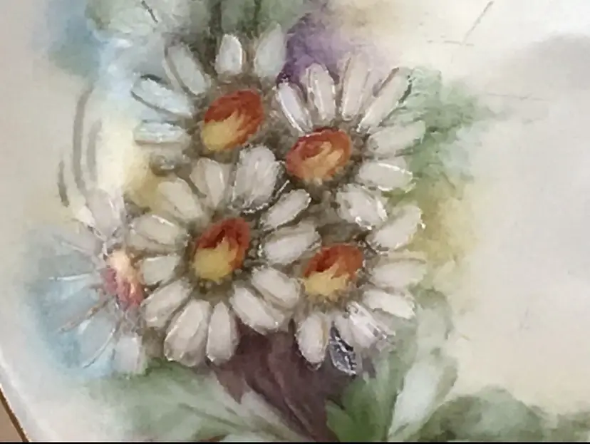 Circa 1908 - 1939 Thomas Bavaria Hand Painted Bread & Butter Plate Chamomile’s. Condition is Used. Beautiful old plate with no chips or cracks. There is some minor scratching on face of plate from what appears to have been use. Have searched this particular pattern and unable to find any others like it. Years of make is based off of mark.