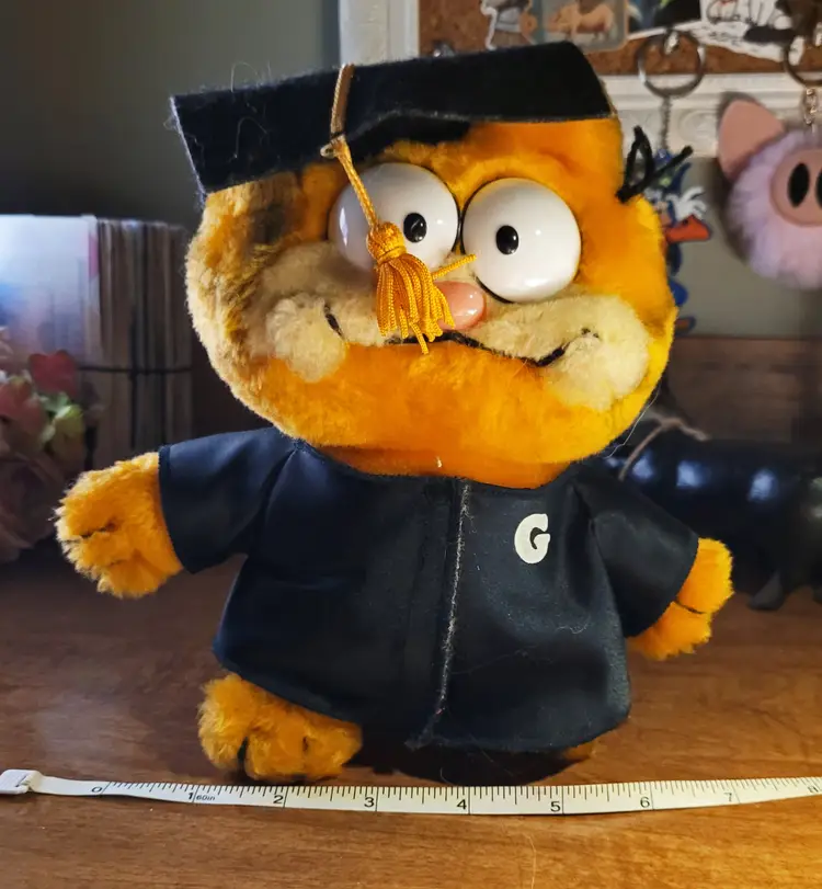 Vintage Plush Graduation Garfield c.1978-1981 United Feature Syndicate, Inc. R. Dakin & Co. Product of Korea. As Is: Grad Cap isn't straight, it lays down. Approx. 7x7x5