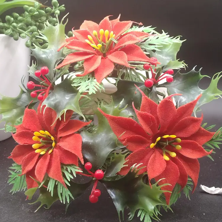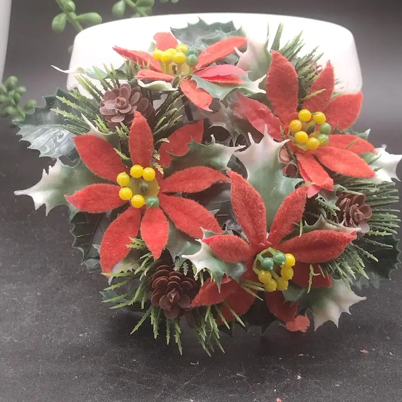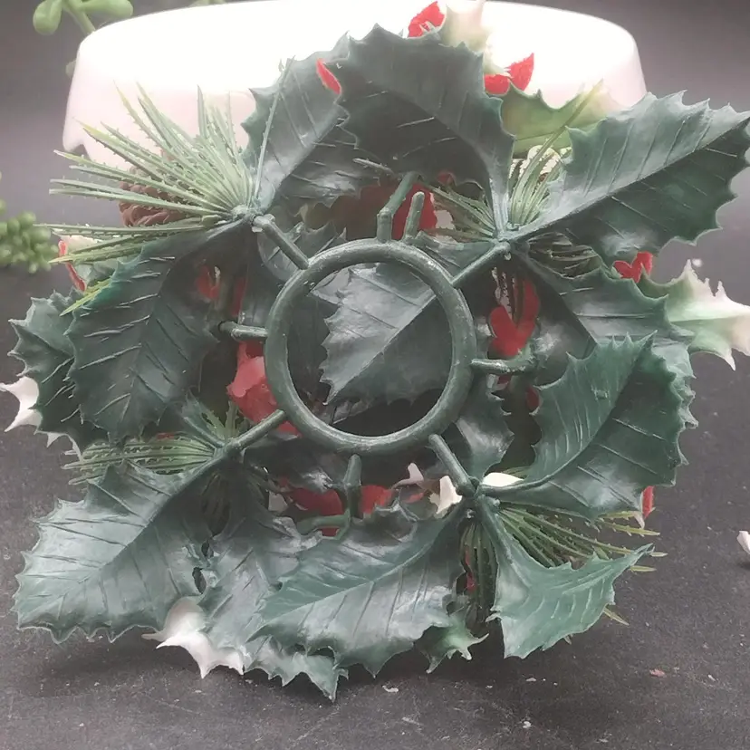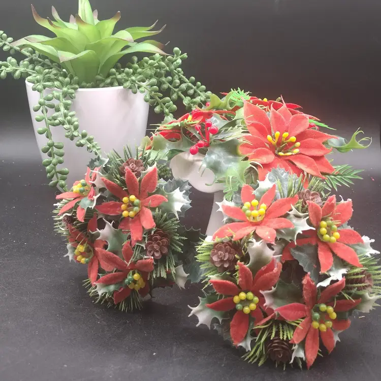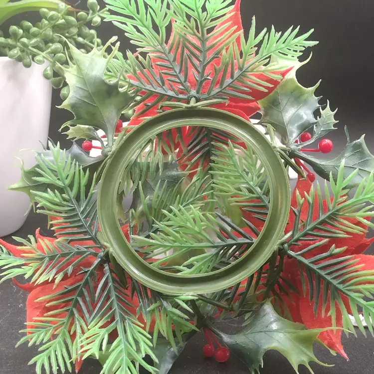 Add a vintage touch to your Christmas decor with these beautiful plastic candle rings featuring Ponsiettas, pinecones and boughs. Perfect for creating a cozy atmosphere in any room, these rings are sure to impress your guests. Made with high-quality materials, they are durable and long-lasting. Use them as pillar or taper holders, or simply as decorative accents in your home. These candle rings are a must-have for any holiday collectibles enthusiast. Get them now and add a unique touch to your holiday décor!