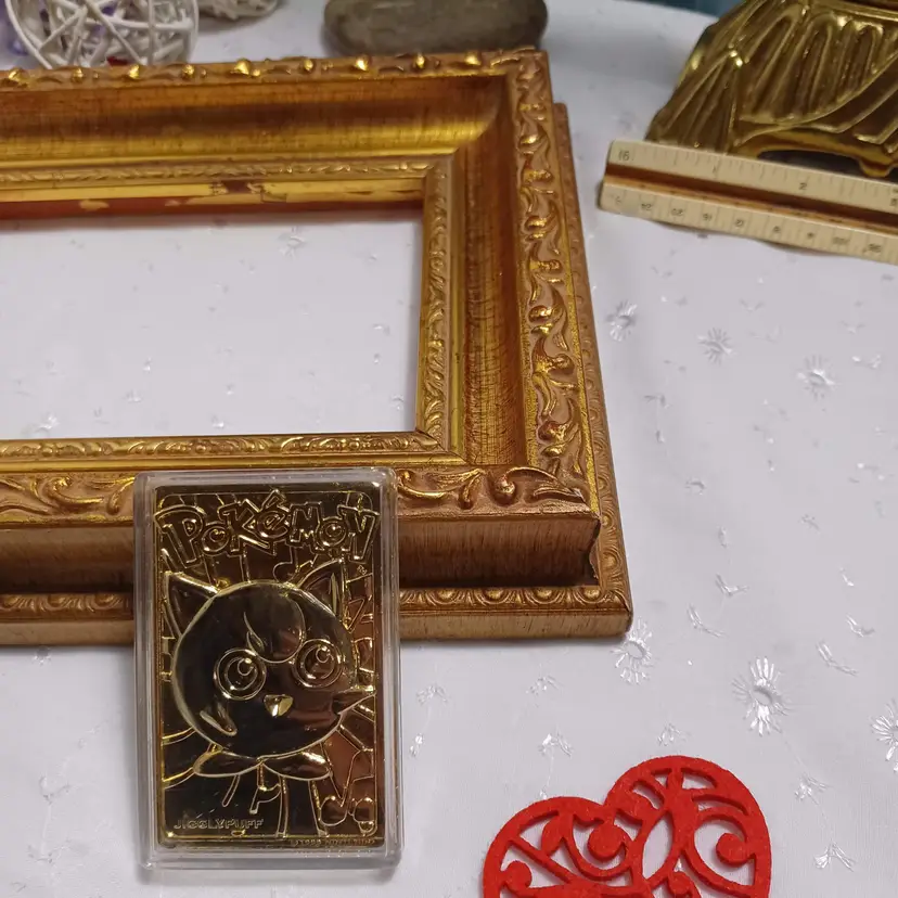 Add a touch of 1999 nostalgia to your collection with this vintage Pokémon Jigglypuff gold-plated card. Perfect for fans and collectors alike, this piece is a shiny tribute to the beloved character. 2x3" in plastic clear case. *in Great condition