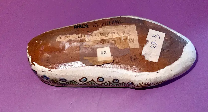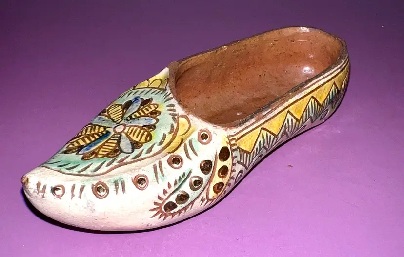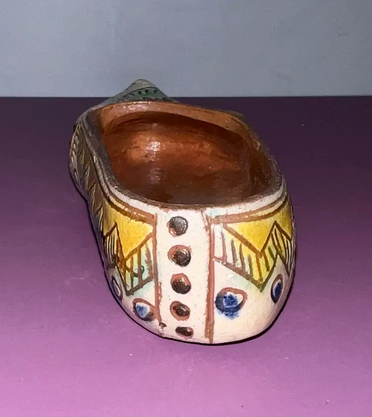 Colorful hand painted red clay shoe from Poland. 5 1/2” x 2 1/2”. No chips or cracks