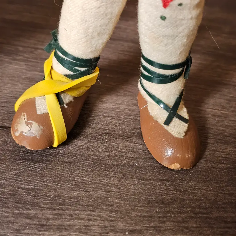Condition: Good vintage condition with some age-appropriate wear. Notable scuffing on the feet/shoes as shown in photos. One rubber band on the boy's shoe has been replaced/added for stability.