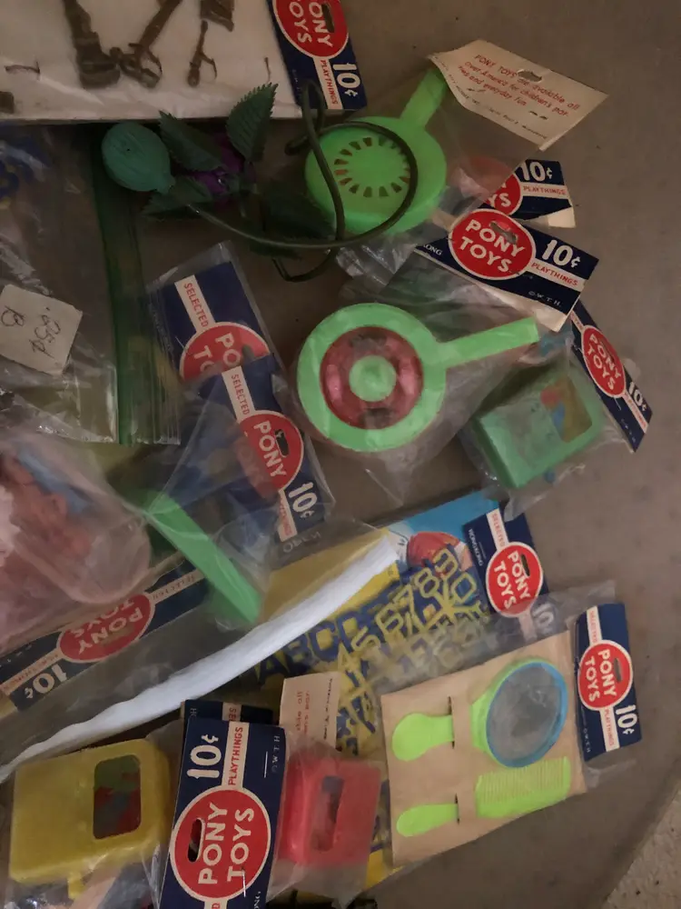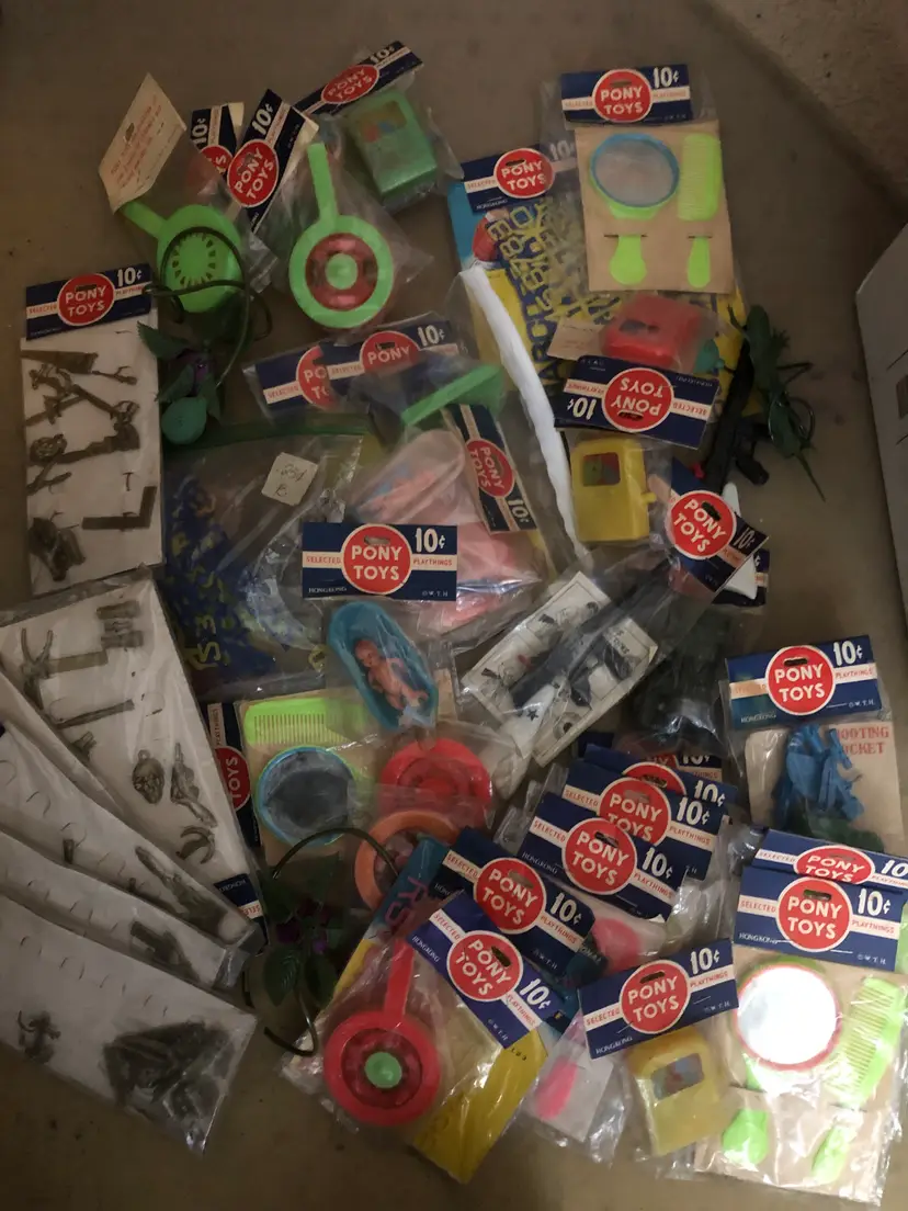 Explore a nostalgic collection of 1950s Pony Toys, featuring a variety of miniature items. Perfect for collectors and fans of vintage toys, this assortment offers a glimpse into classic playtime fun. Each piece is a unique throwback to a bygone era.