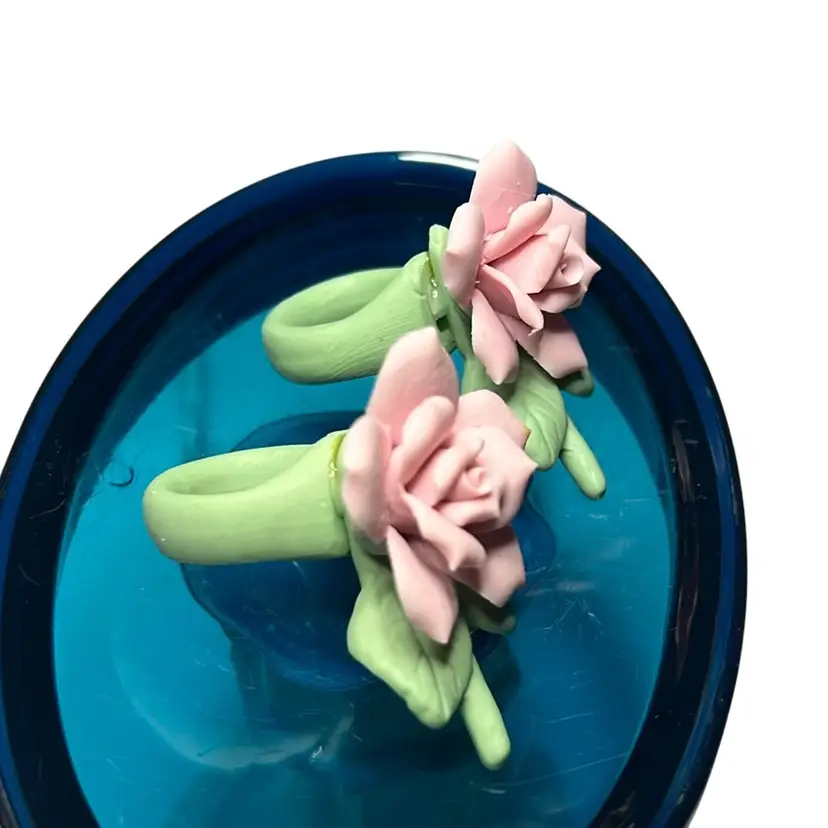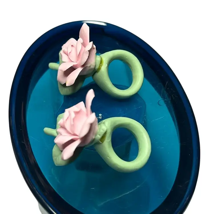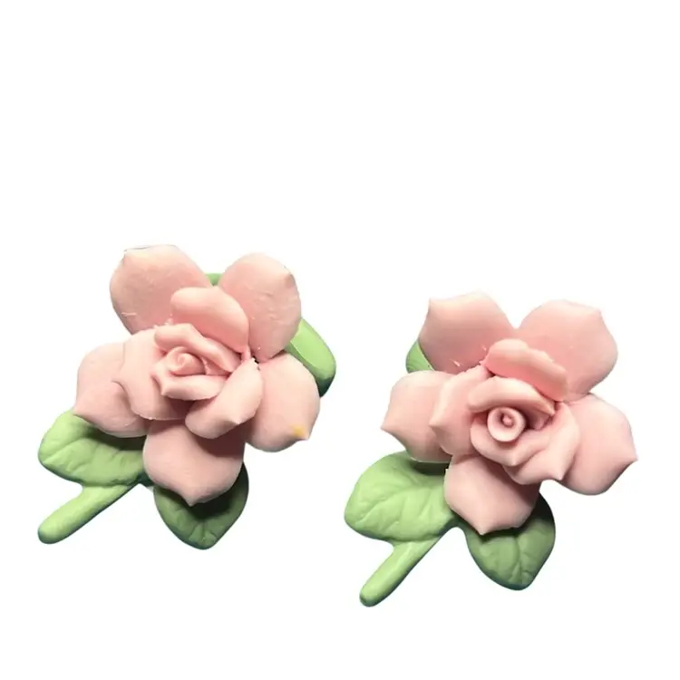 Very delicate but pretty pink roses to slide onto taper candles. No damage - 2” wide