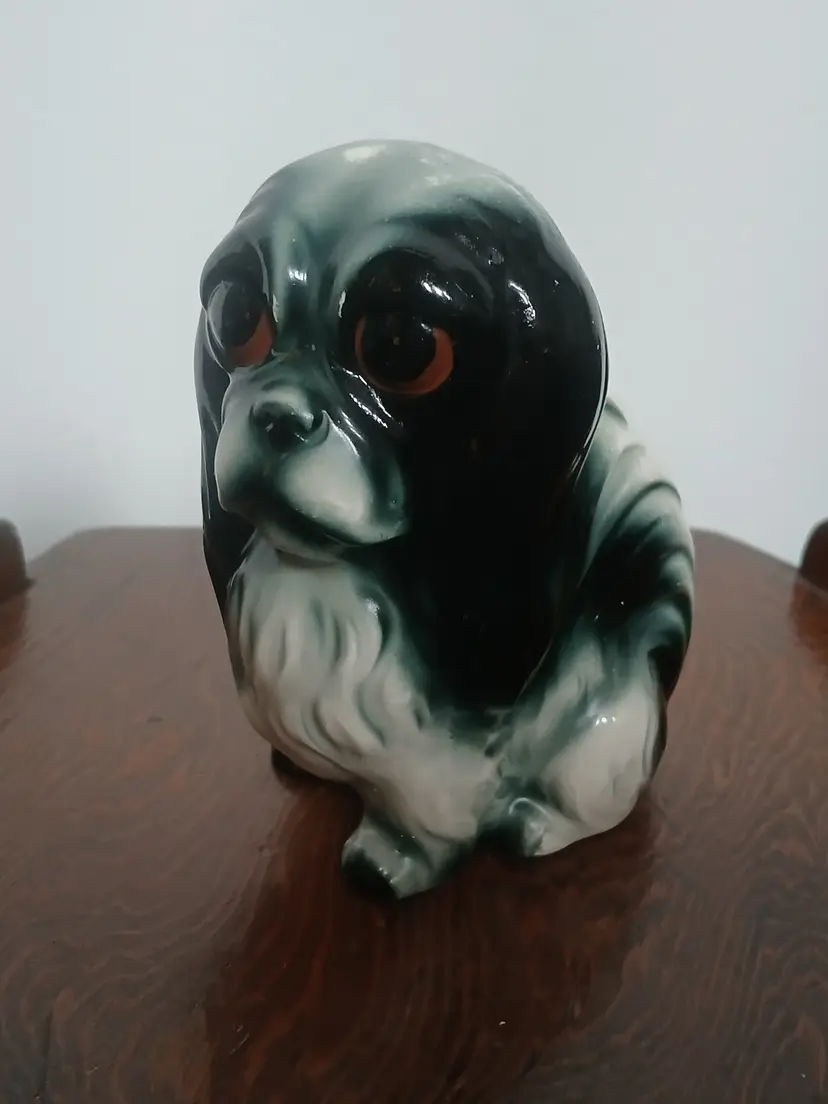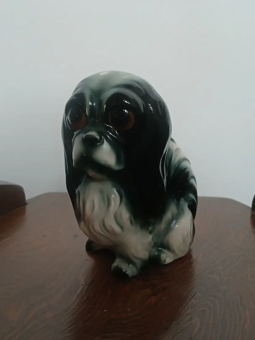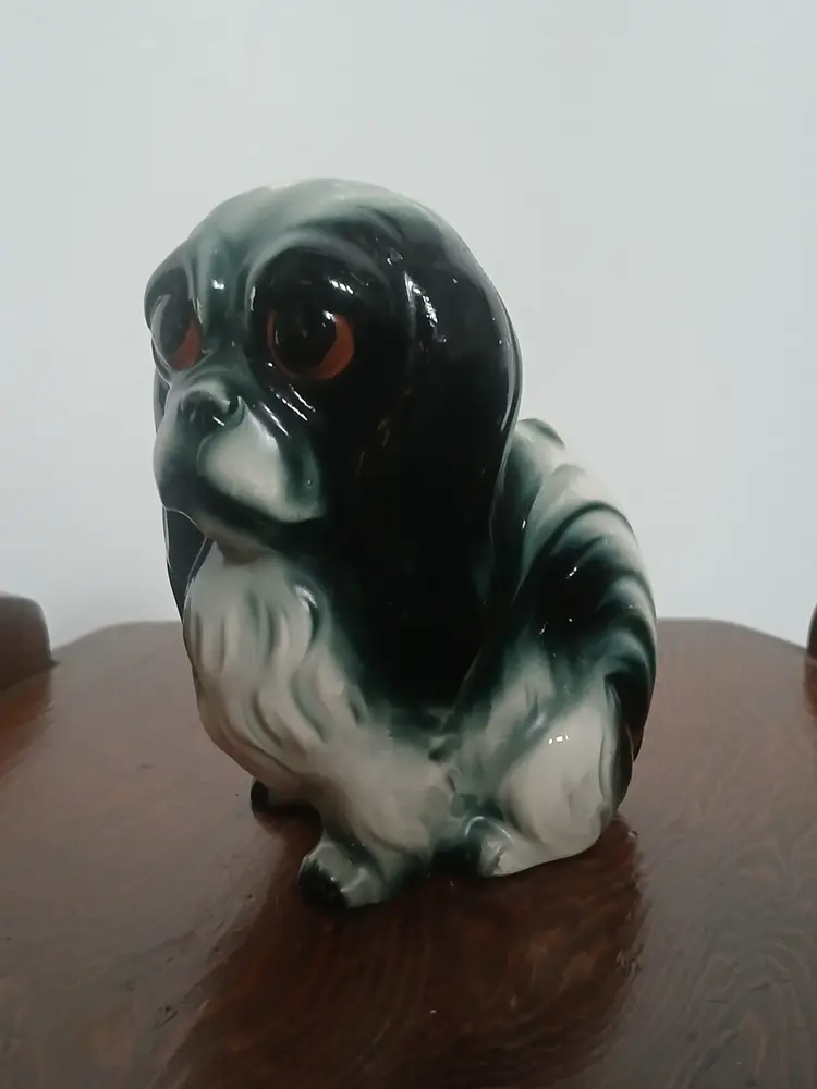 Vintage Porcelain Ceramic Black and White Pekingese Dog Figurine