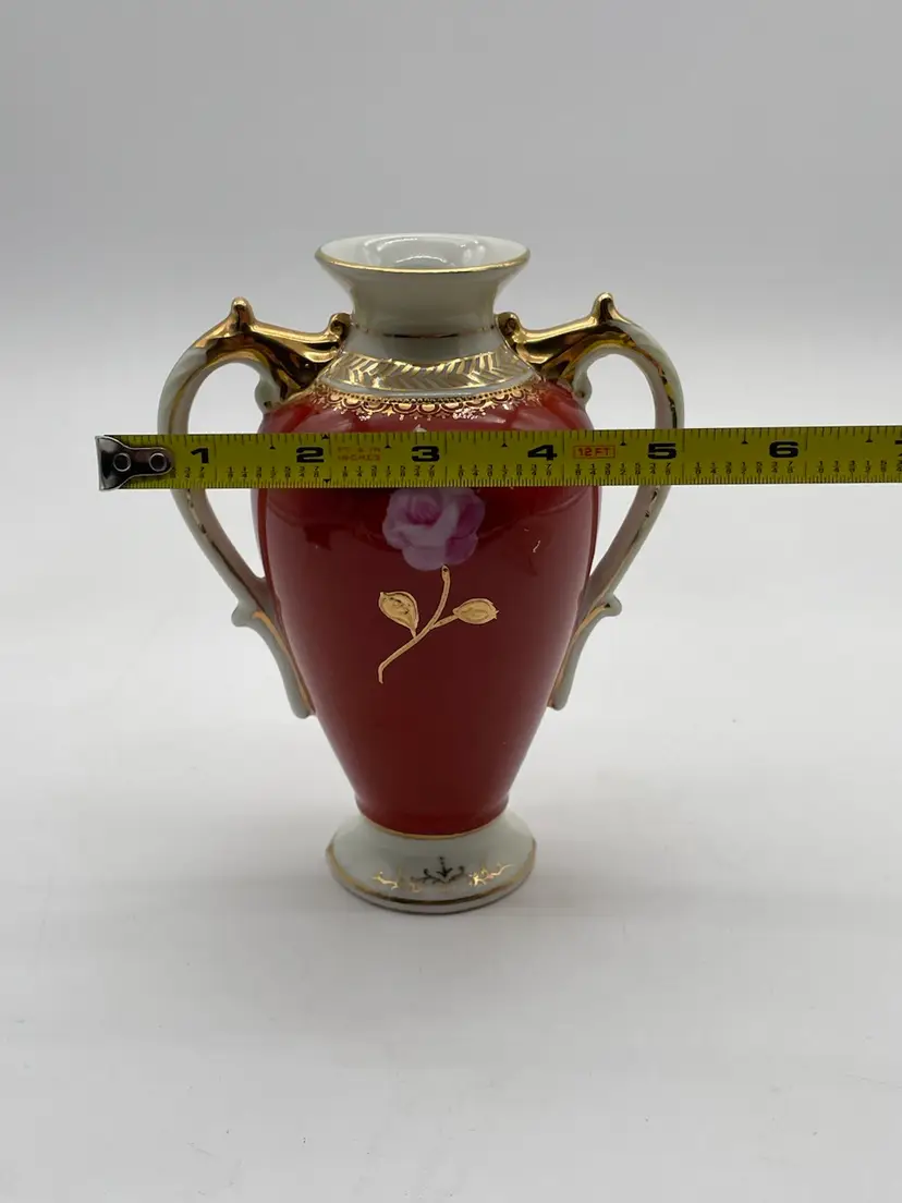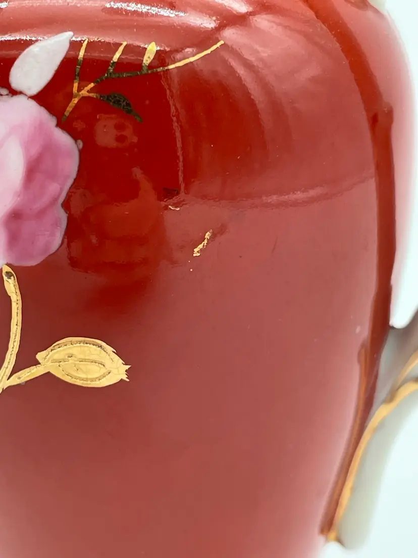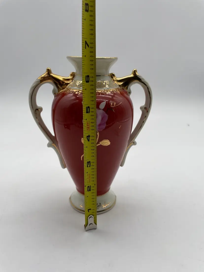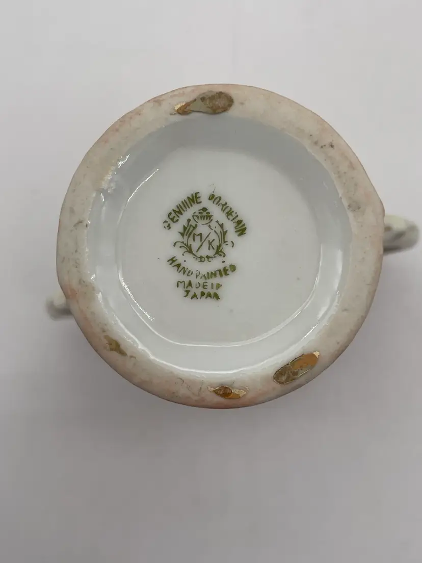 Signed genuine porcelain-Handpainted-Made in Japan. Very good condition. Does have a “rub” area on the side as shown in photos. Measures approximately 6.5” x 5”