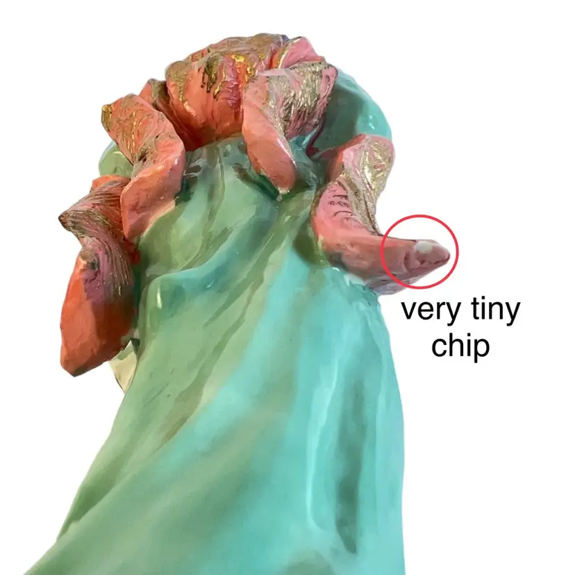 Condition: Pre-owned, overall excellent with a very tiny chip on the back edge of the kimono sash (see last photo for detail). No other visible flaws or repairs.