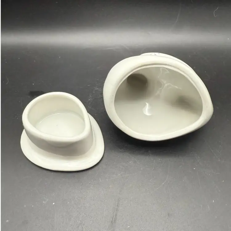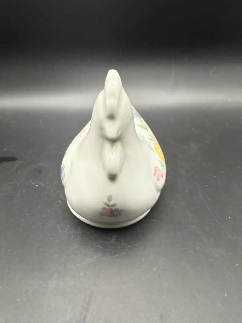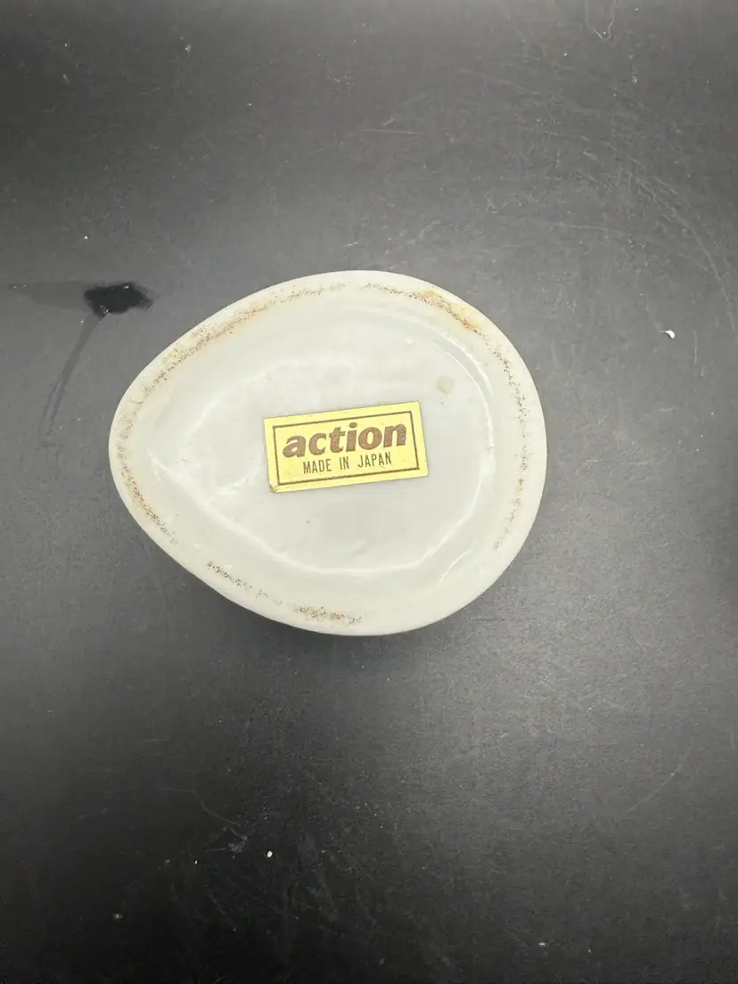 Cute MCM chicken trinket box. Take the top off to reveal an egg-shaped container under the chicken! Hand painted and made in Japan. Measures 3 1/4 high and 3 1/2 long.