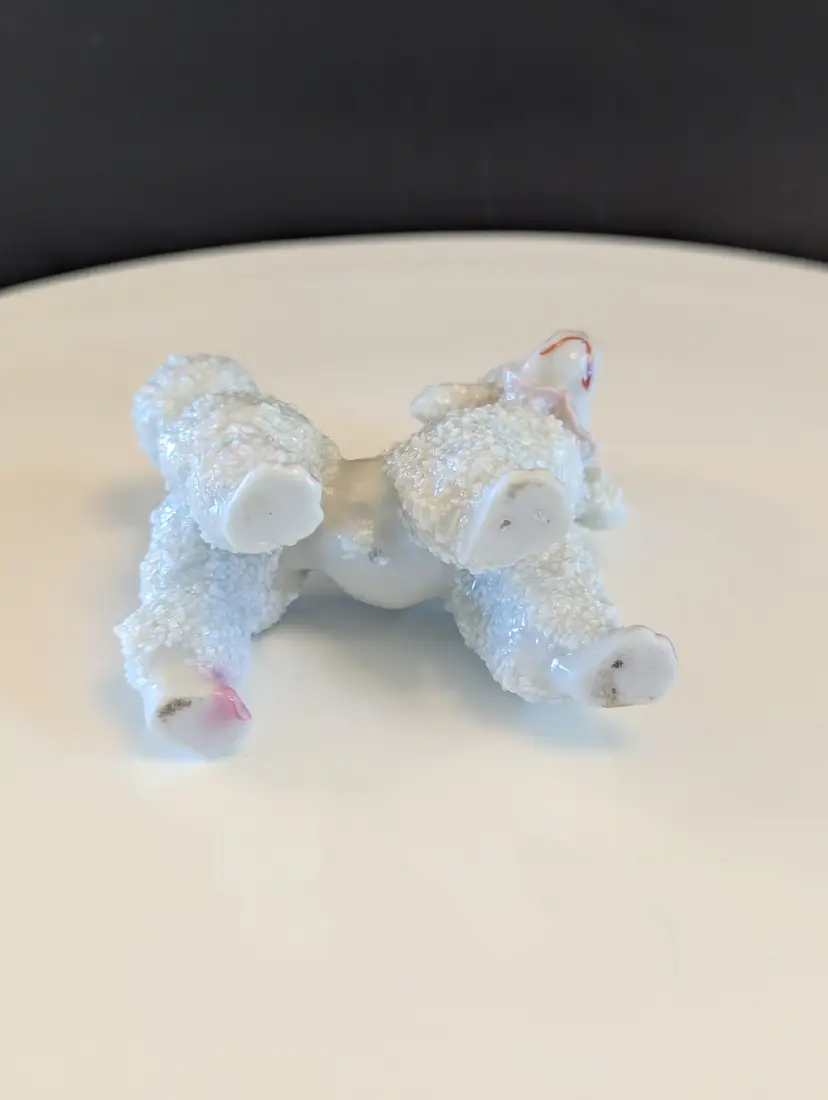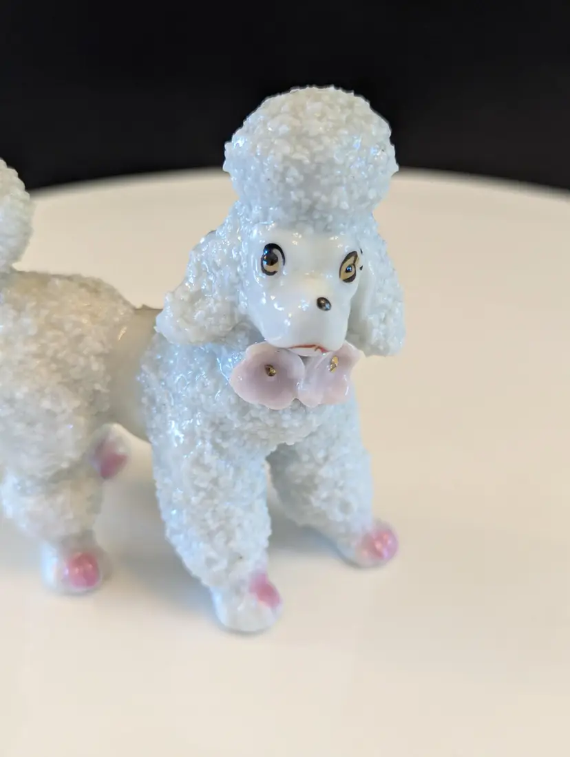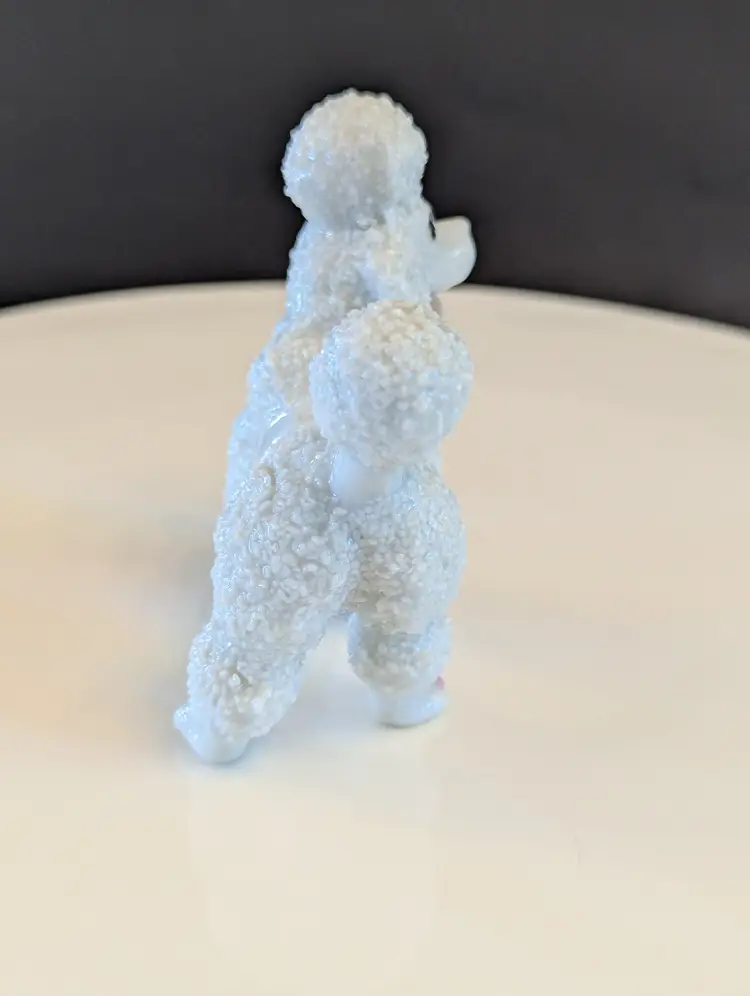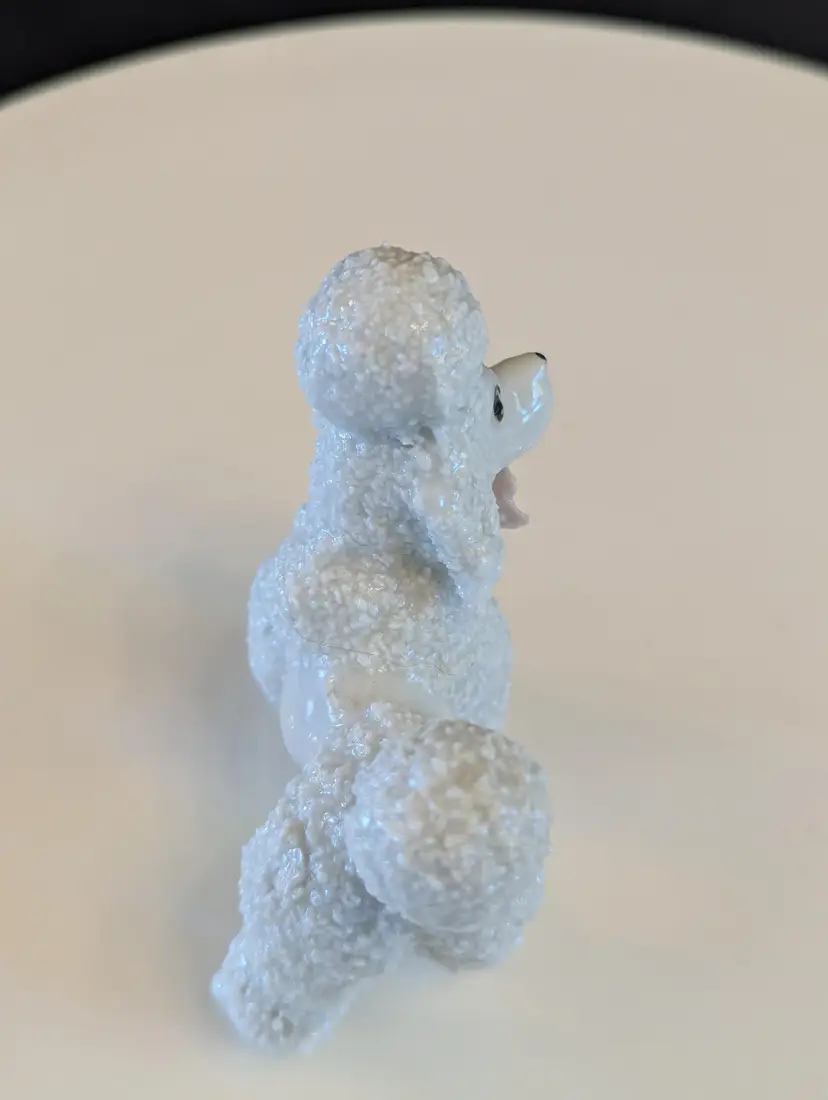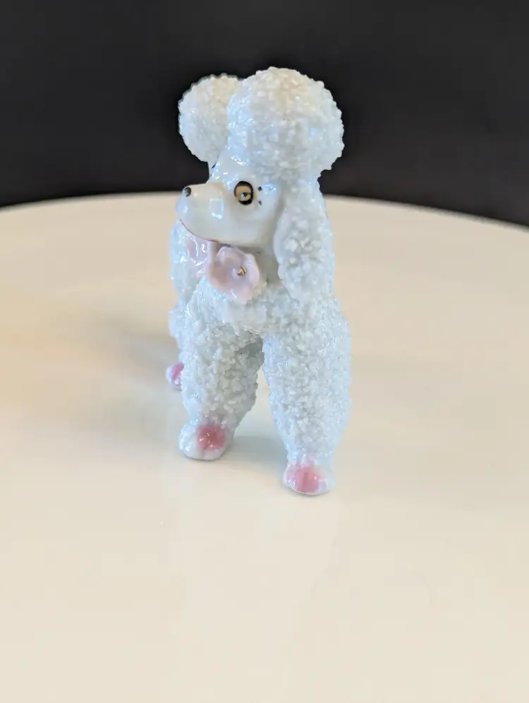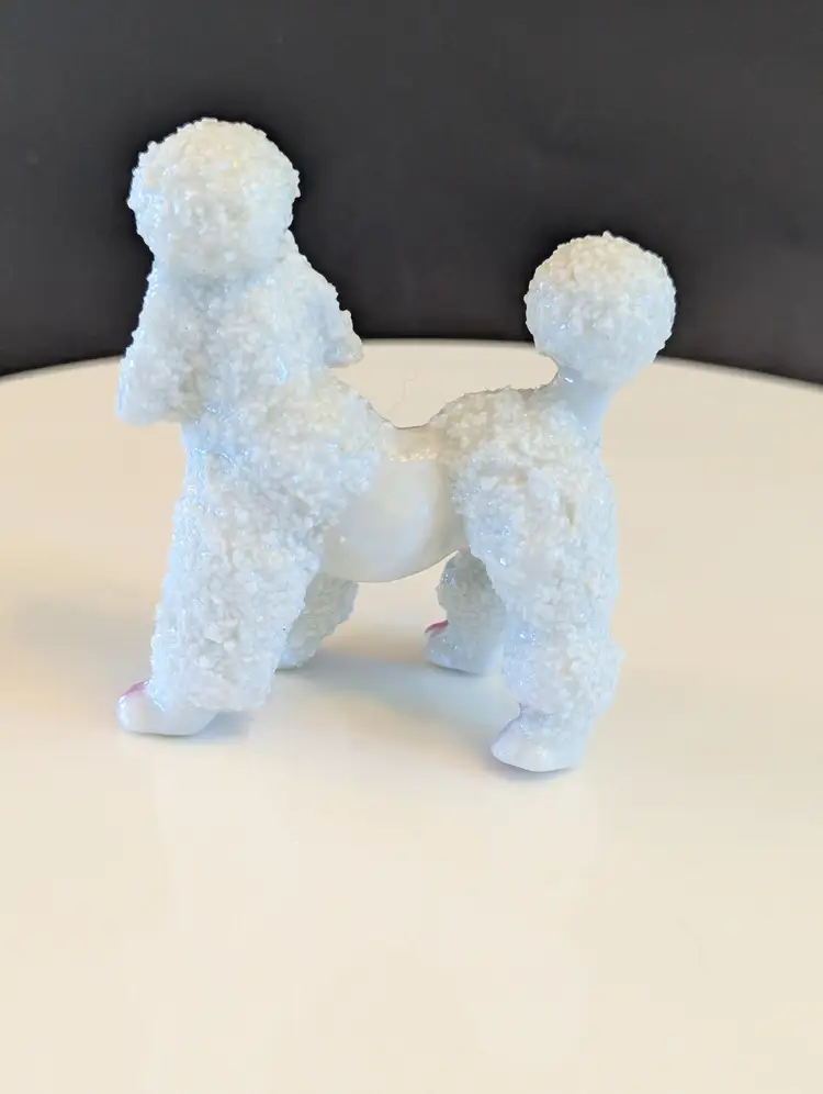 Add a touch of mid-century charm to your collection with this vintage porcelain poodle figurine. Featuring intricate detailing and a glossy finish, this adorable poodle is perfect for dog lovers and collectors alike. Measures approximately 3 inches in height. Good vintage condition. Please note that I'm happy to accept returns if you are unhappy with your purchase (buyer pays return shipping) and I'm happy to bundle items if more than one is purchased (as is safe) to save on shipping. I also refund shipping overages. Please let me know if you have any questions!