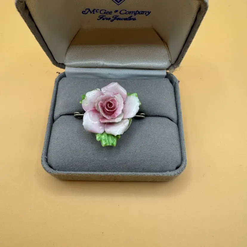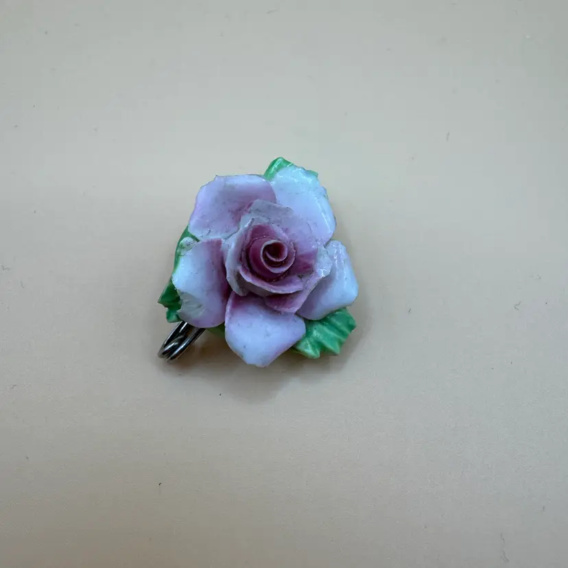 vintage porcelain rose flower brooch, made in manufactured England