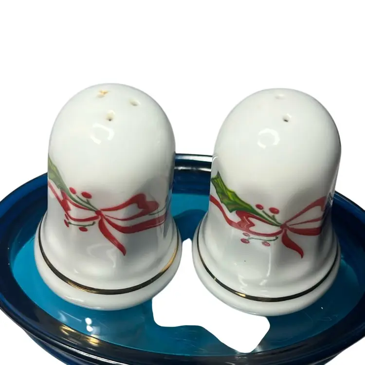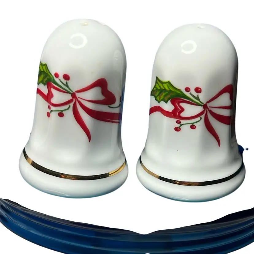 Hand painted ribbon, holly leaf, berries and gold trim. No damage - measures 3” tall & 2” wide