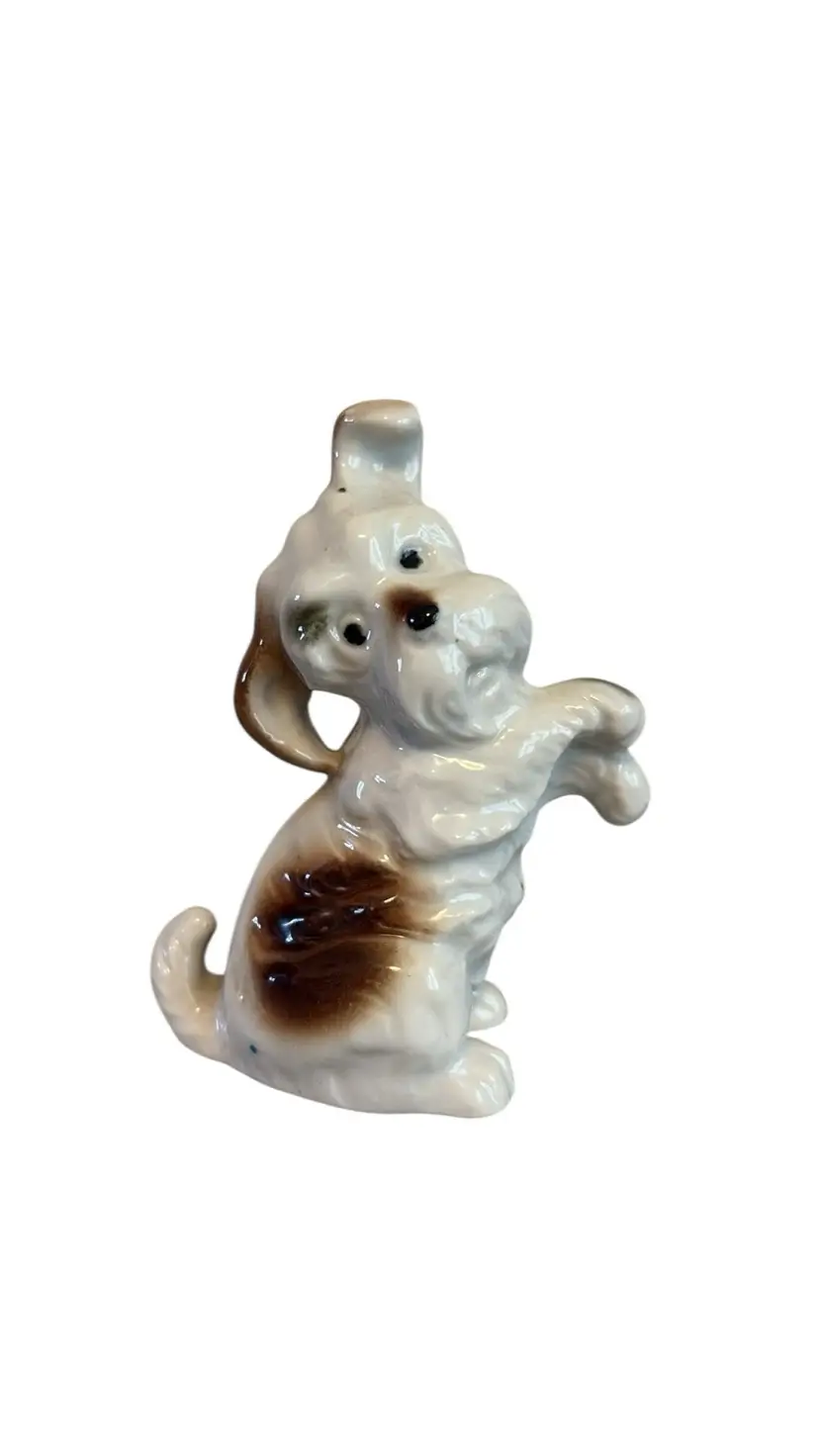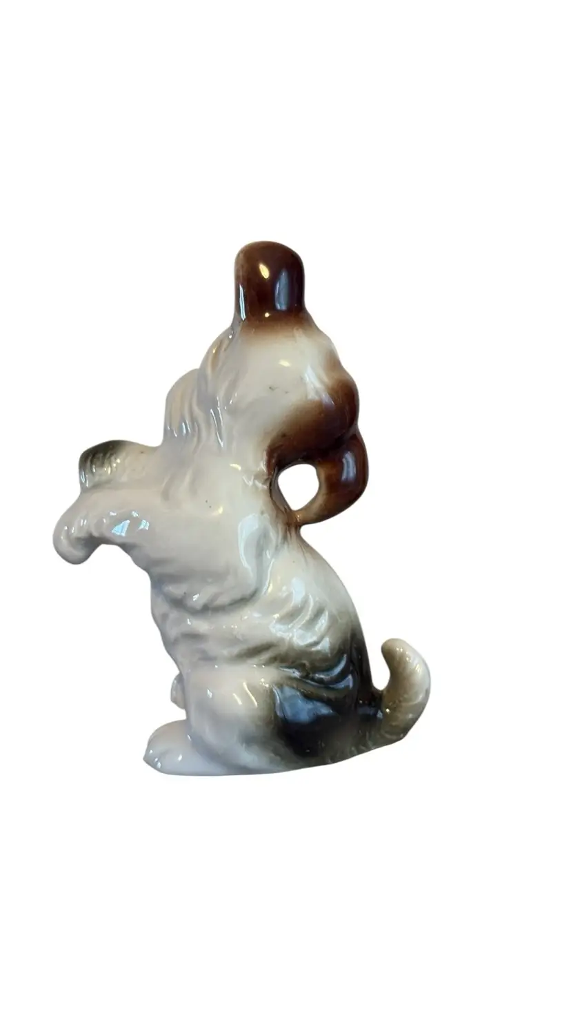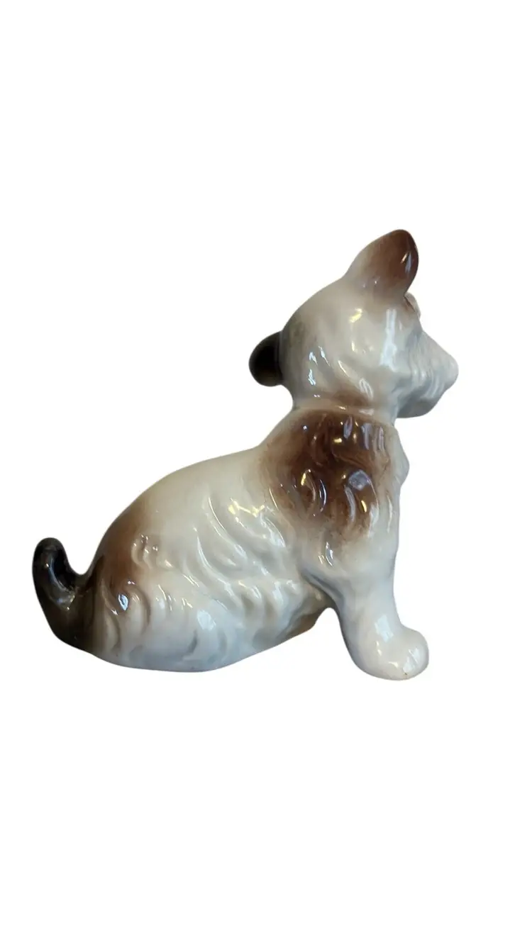 Vintage Porcelain Schnauzer Terrier Dog Figurines Brown, Black and White Set of 2 Bottom Stamped Japan Standing Figurine measures approximately 4.5”H x 3”W Sitting Figurine measures approximately 3.5”H x 3.5”W Excellent vintage condition no cracks or chips