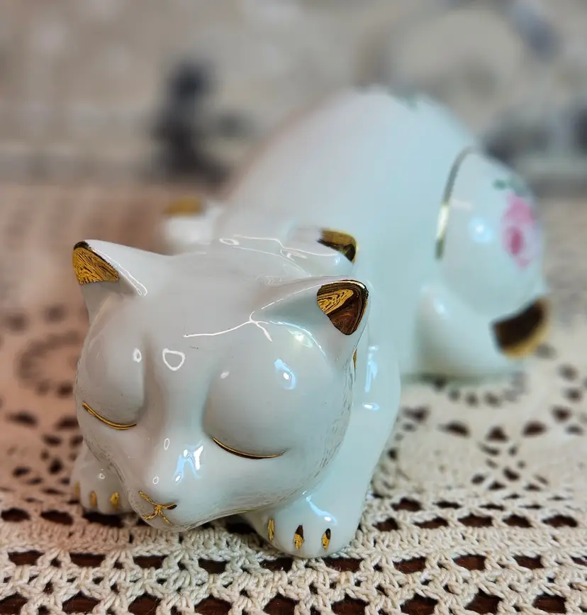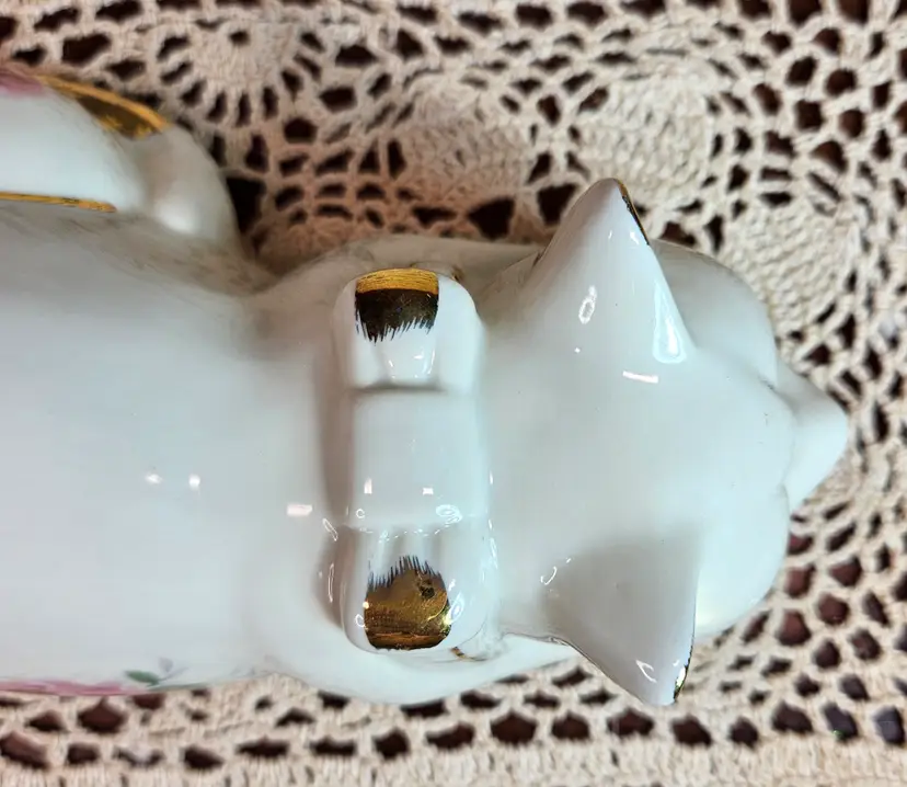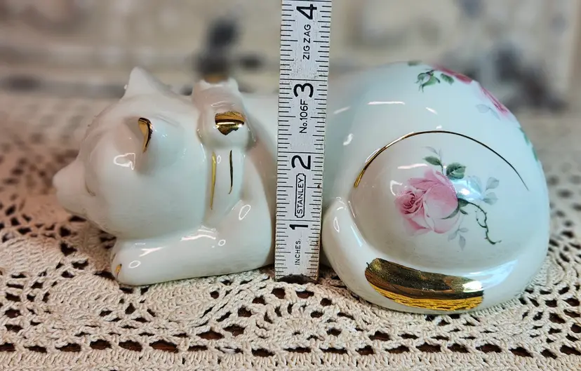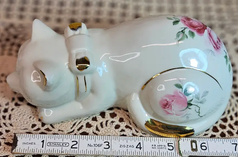 This charming cat figurine is in excellent, used condition, with no appreciable chips, scratches or cracks. Measurements are depicted in the pictures of the item or listed in the description of the item. Please review the photos, as they are part of the item description. Photos will always reveal noticeable defects, as will my description. Any white “blemishes” that are not pointed out in this section are from the lighting that I use for my photos. If you need clarification, please reach out to me.