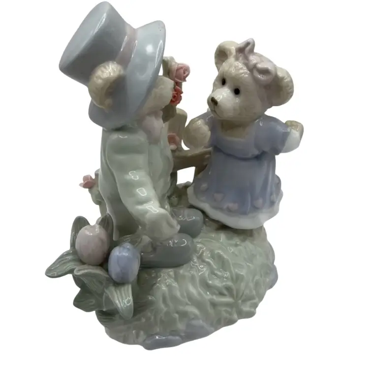 Both bears are dressed in formal attire with beautiful spring colors. Unsure of the melody but adorable.
