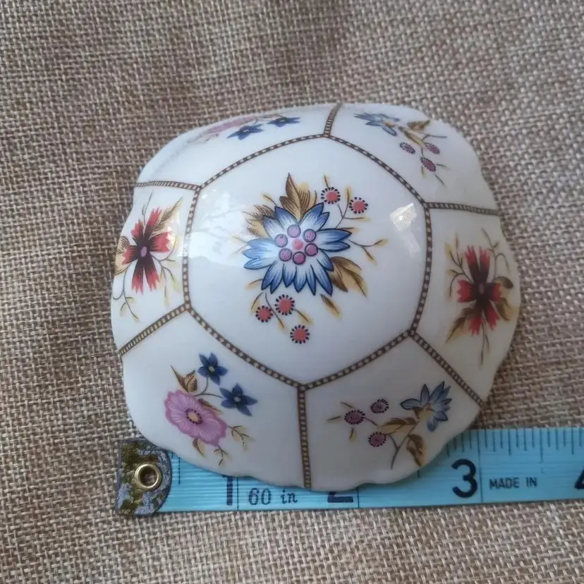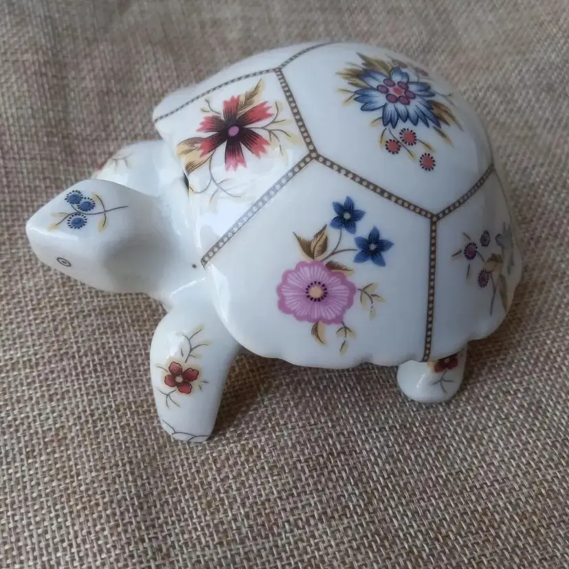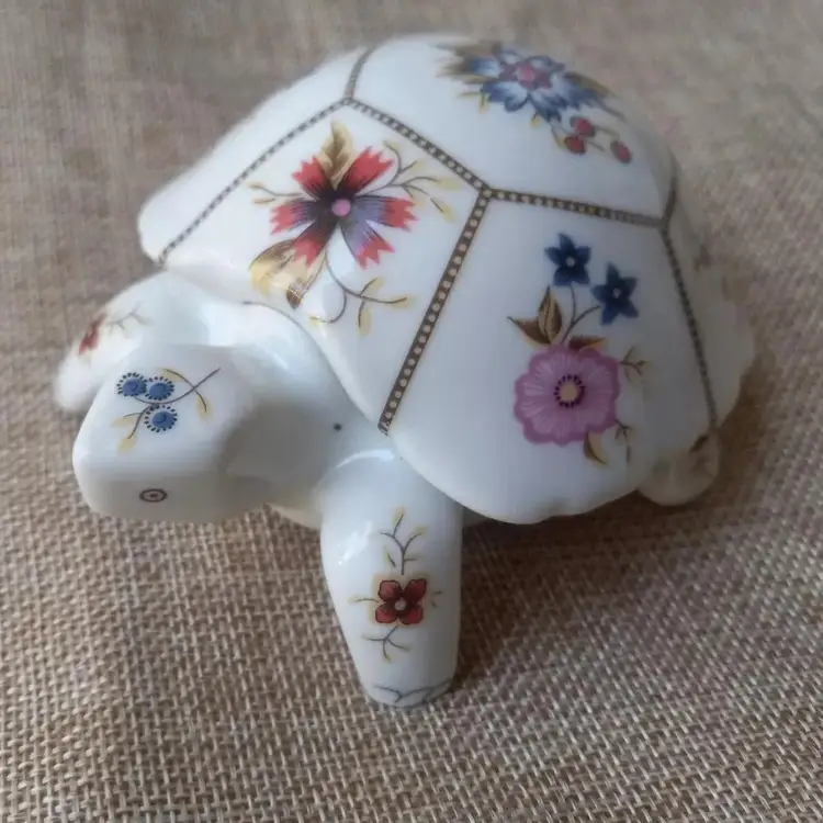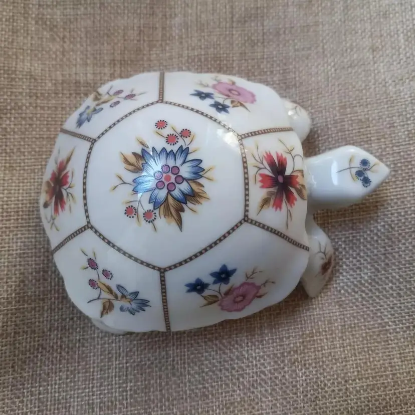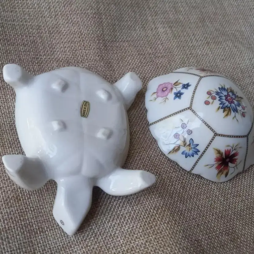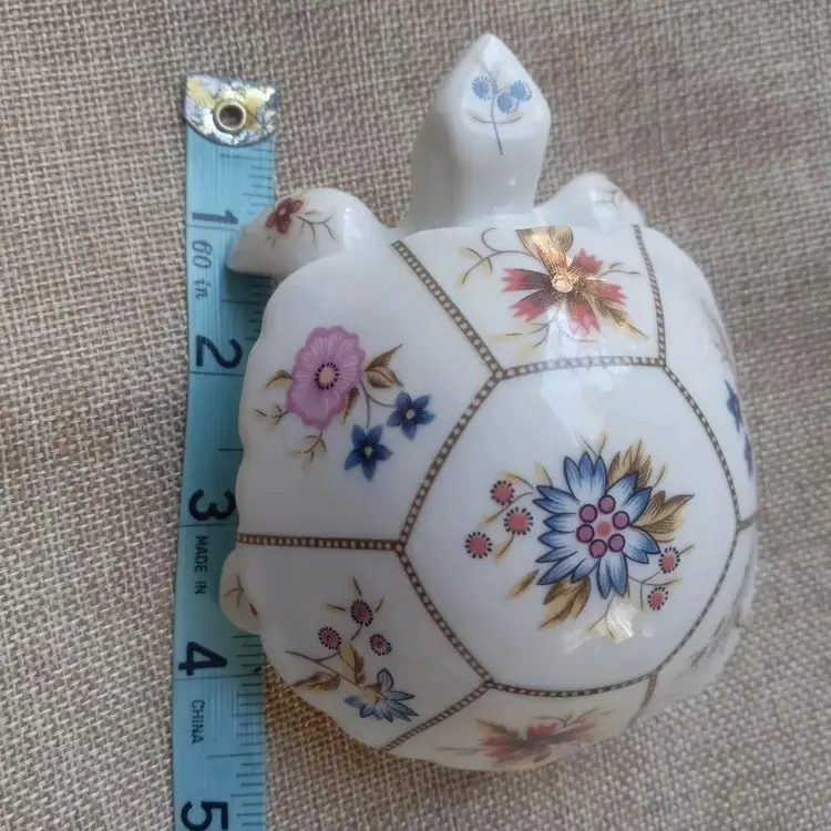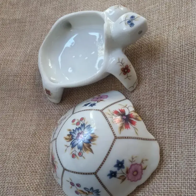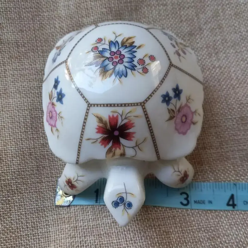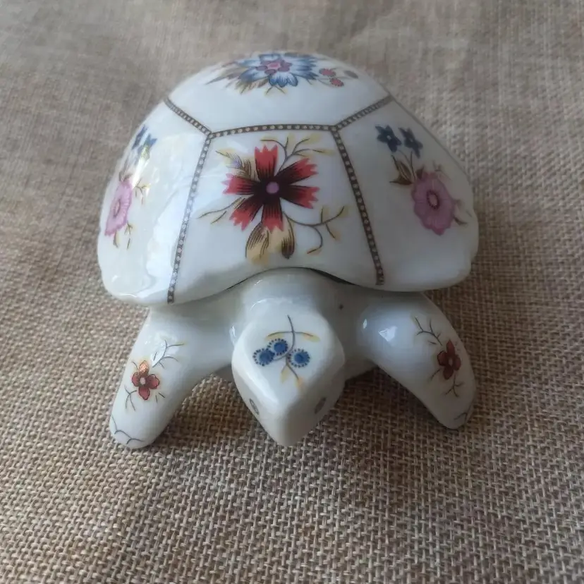 Vintage Porcelain Turtle Trinket Box with Flowers