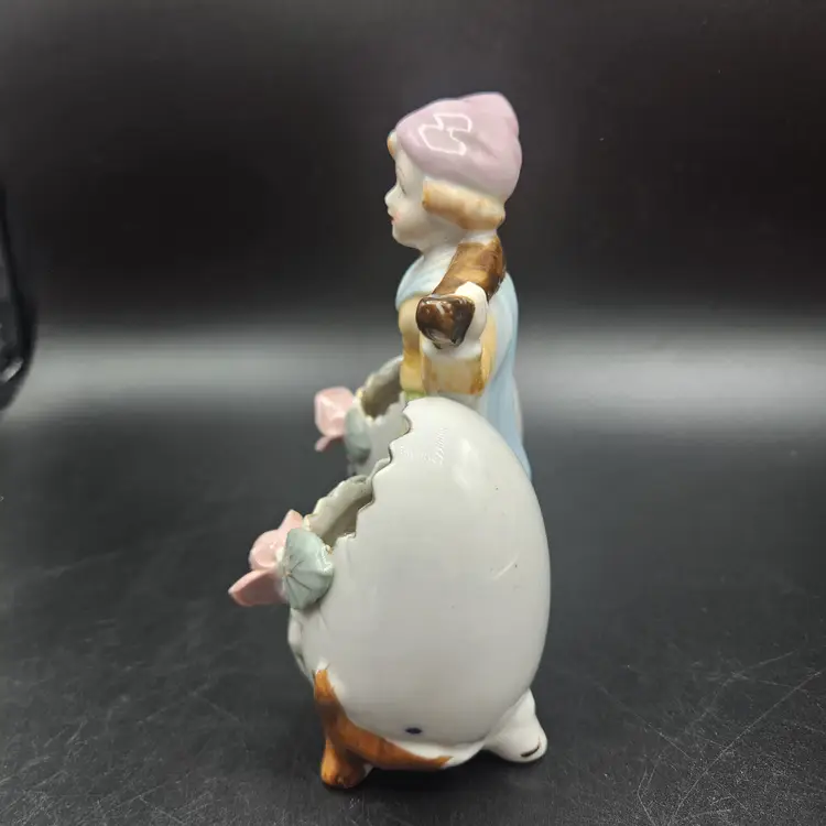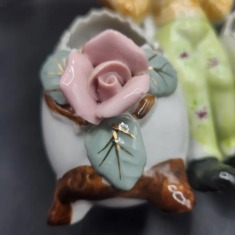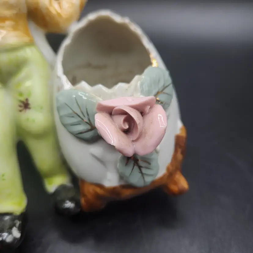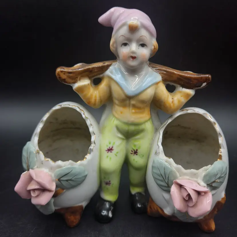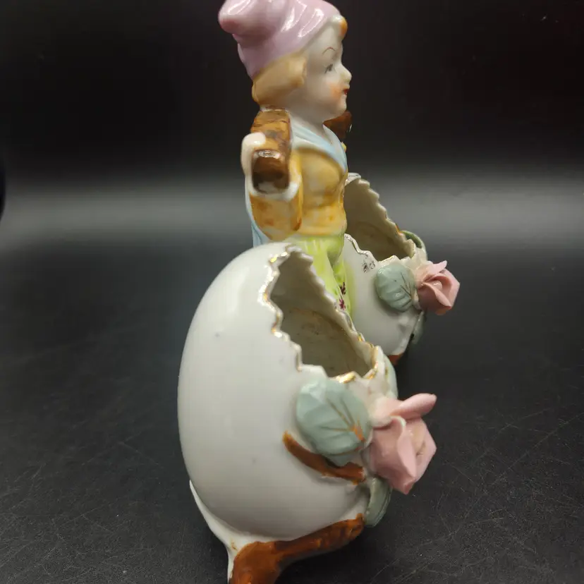 Vintage Porcelain Vase Double Egg Cracked Egg Planter Vase Floral Design Japan. Good condition, no cracks, but there is a chip of one flower petal, as seen in photos. It is 6" tall and wide. Made in Japan.
