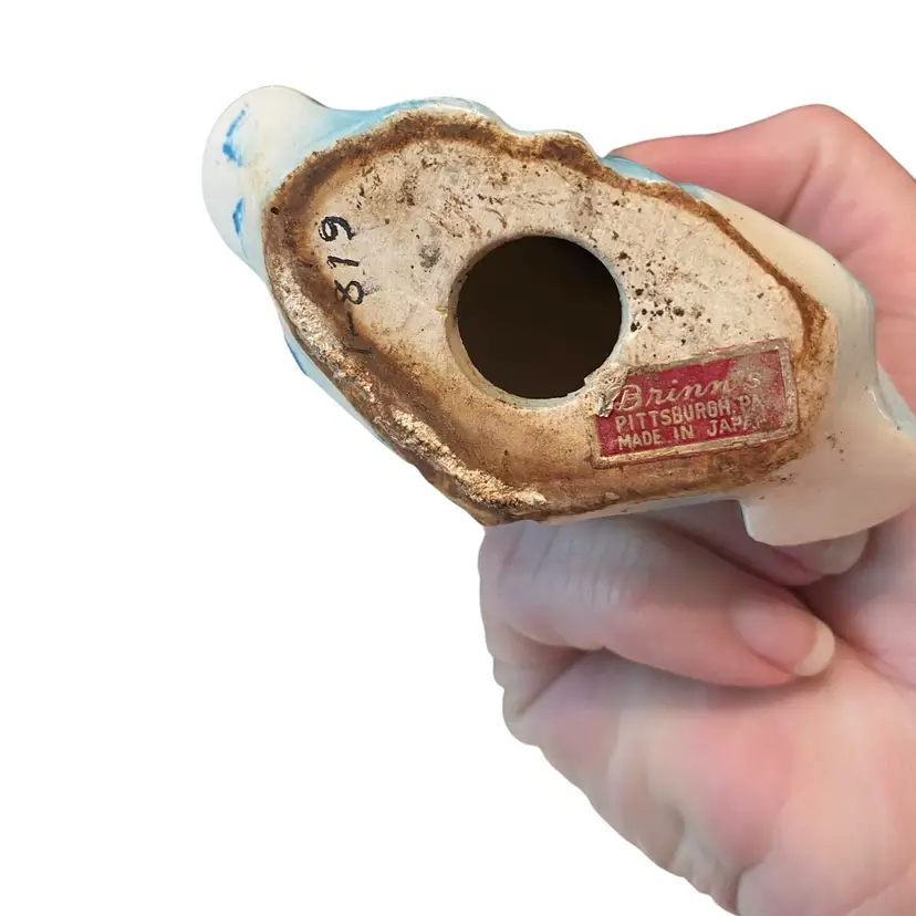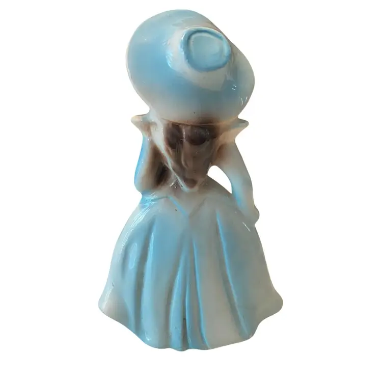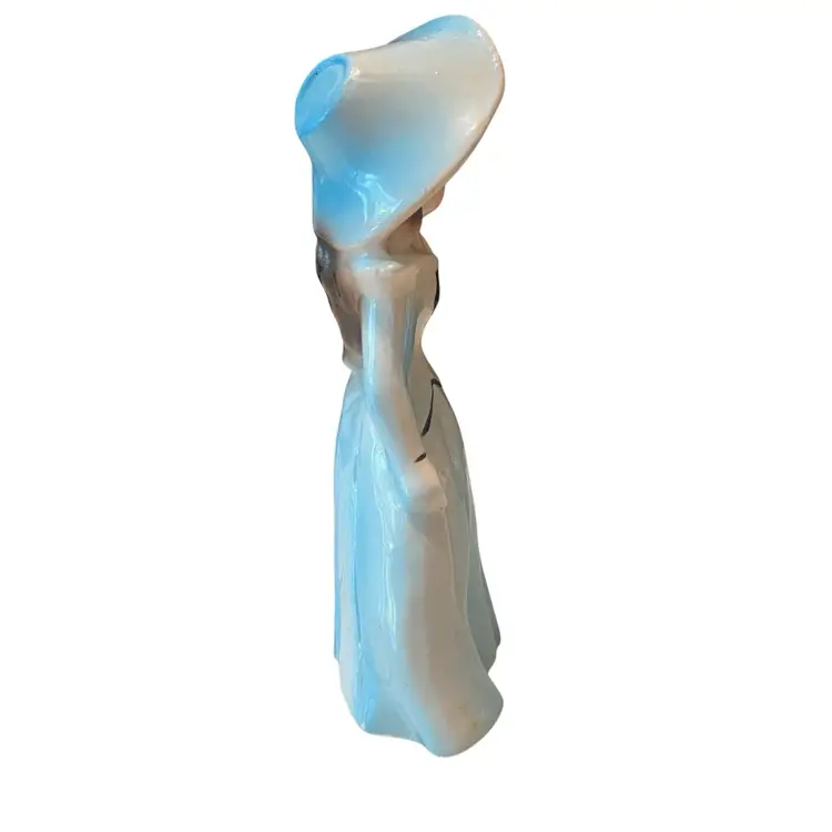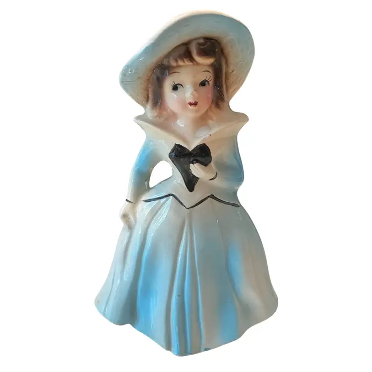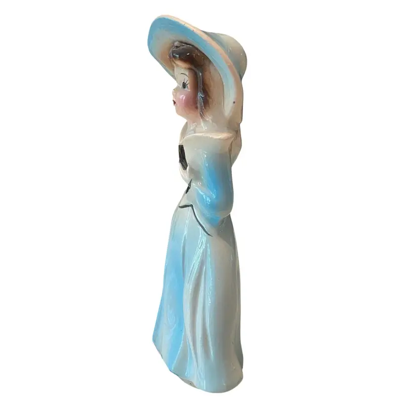 Vintage Porcelain Victorian Young Girl in blue Hat Dress Figurine Japan original sticker Brinns 5in tall