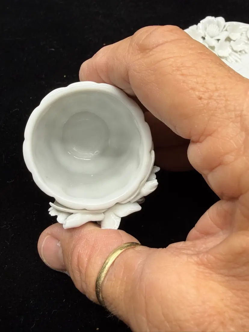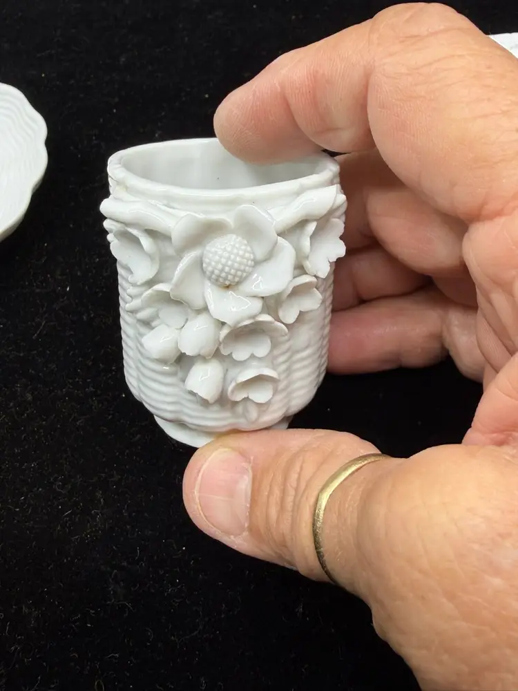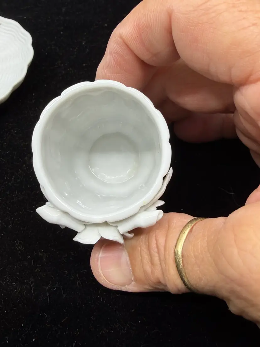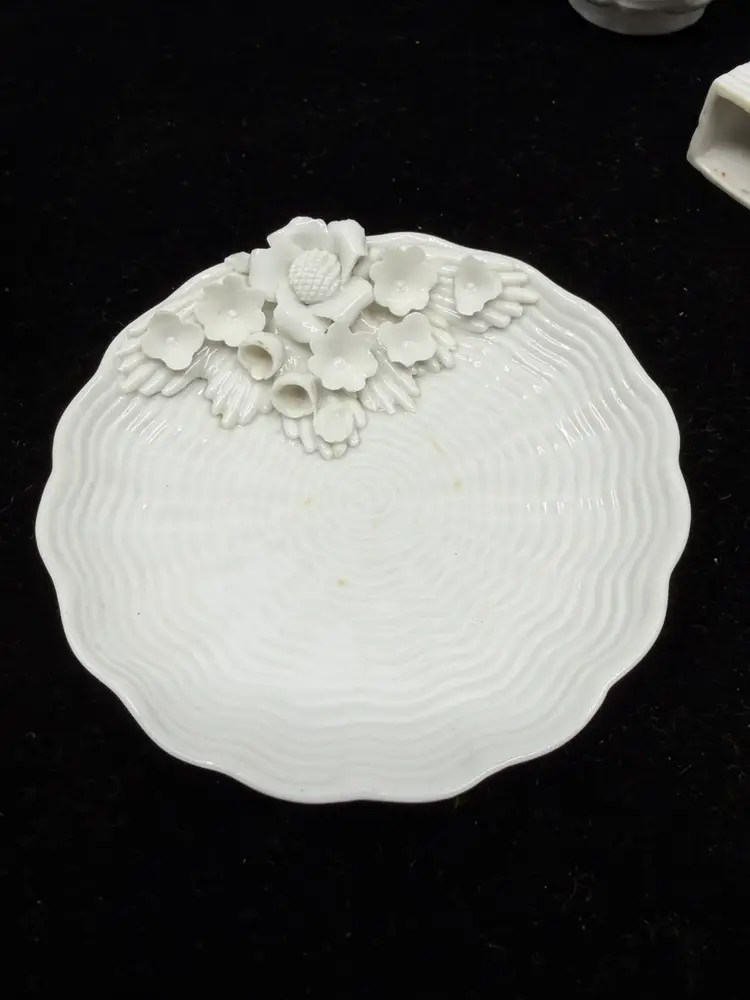 Good vintage condition. Dish-3.5”. Match holder- 1.25 x 1.75”. Cigarette holder- 1.5 x2.25”