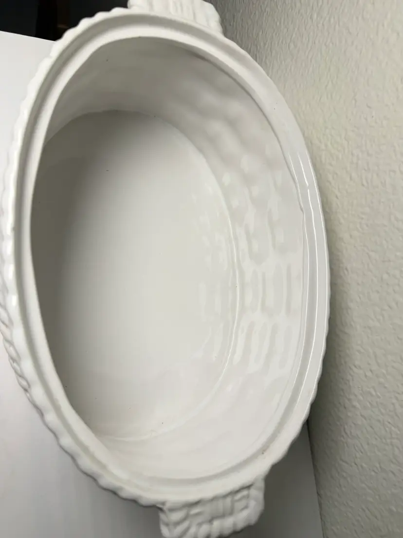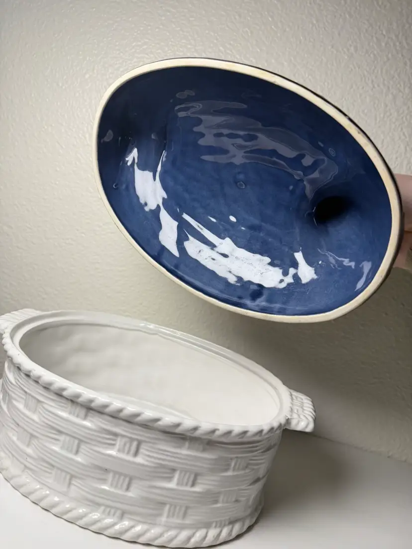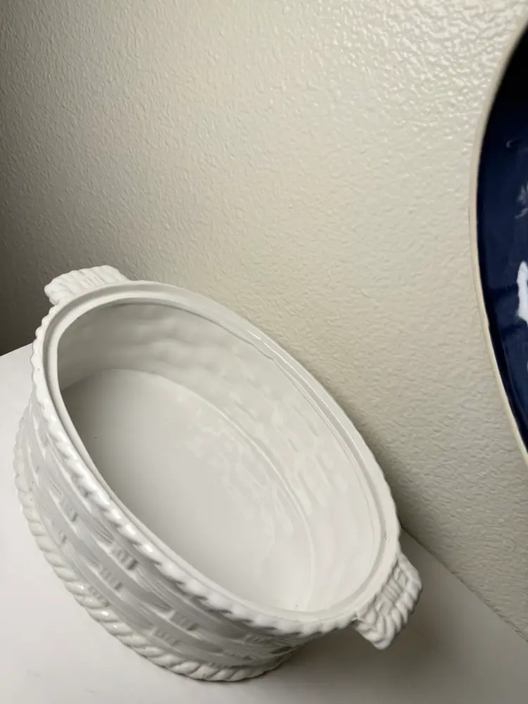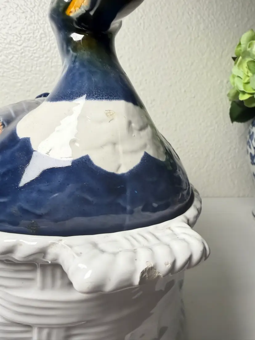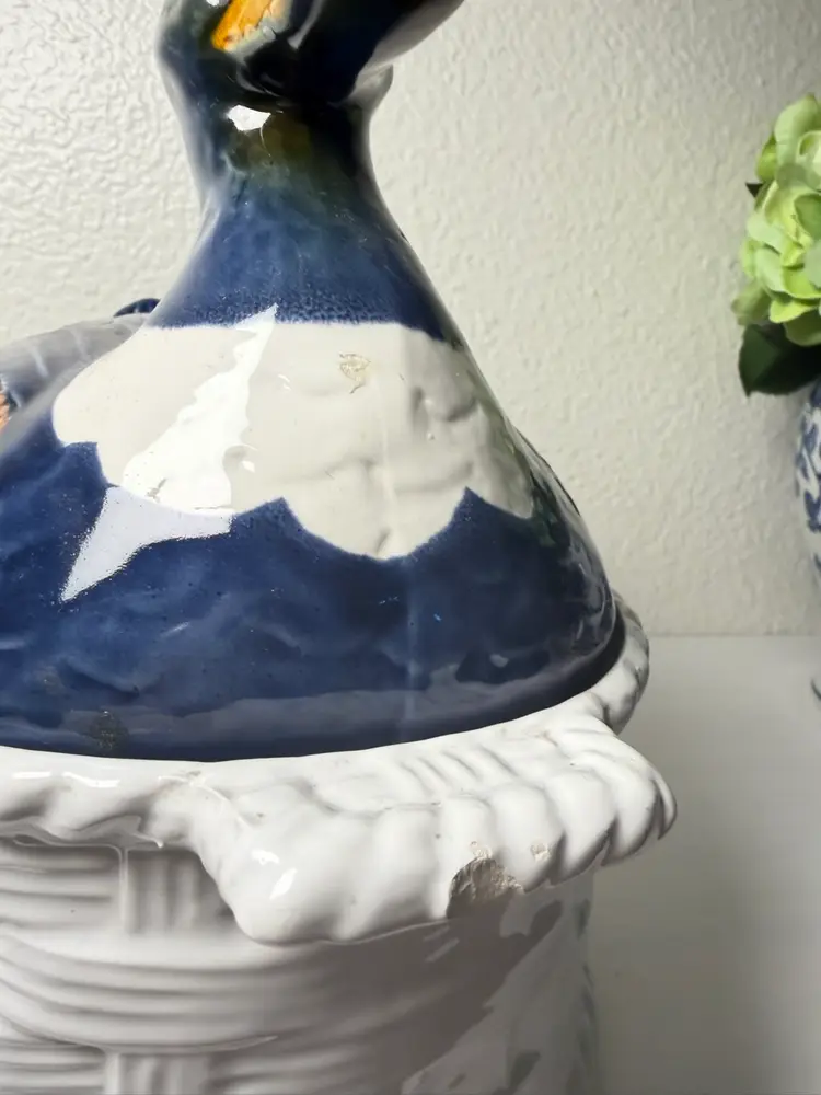 Vintage Portugal Mallard Duck Tureen Covered Ceramic Dish Basket Weave 11"