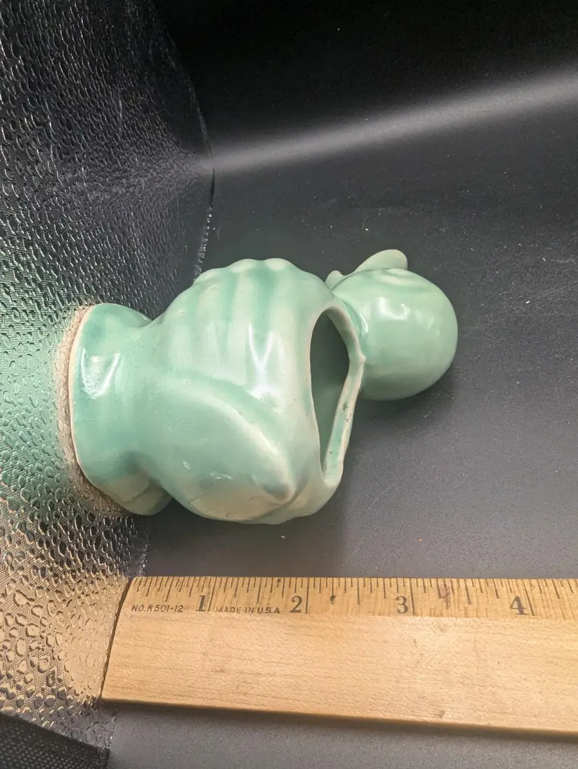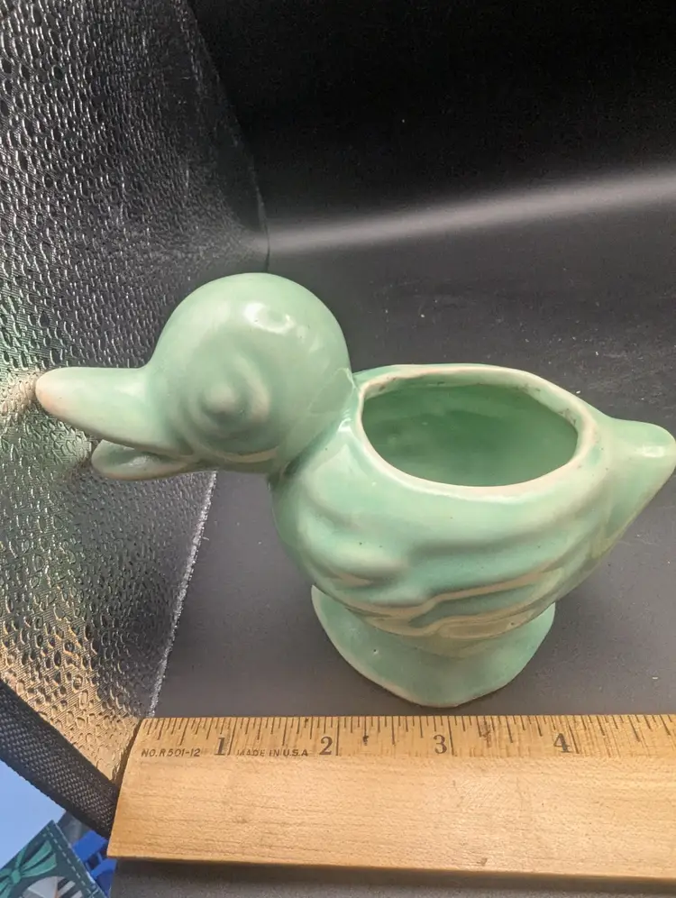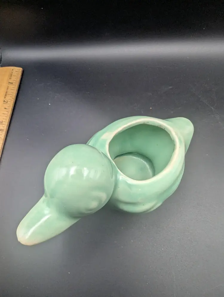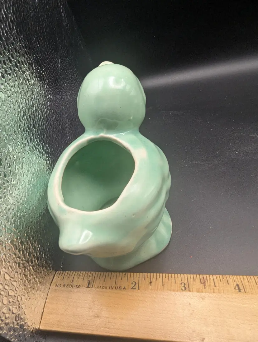 This is a fantastic Vintage Possibly McCoy/Shawnee Pottery Duck Planter Figurine Mint Green 4"H. Add a whimsical touch to your decor with this charming vintage ceramic duck planter. Perfect for small plants or as a quirky decorative piece. Please see all pictures for condition and measurements.