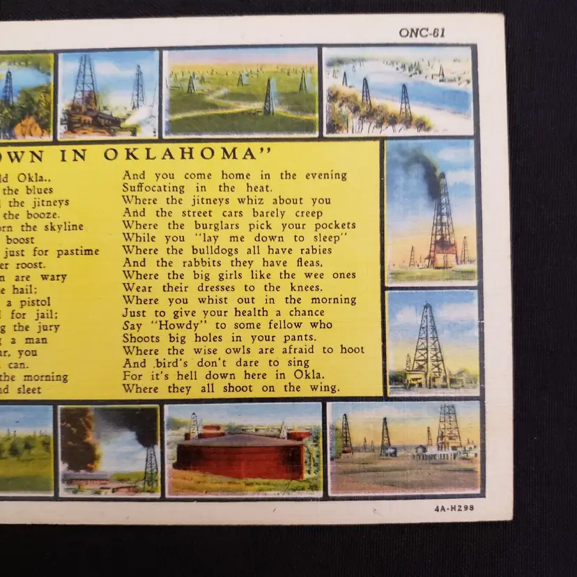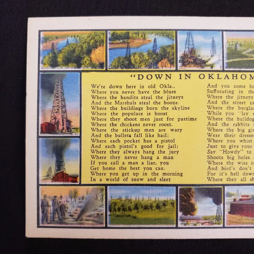 Region: Oklahoma Country: United States Theme: Cities & Towns Material: Paper City: Oil Wells Country/Region of Manufacture: United States Original/Licensed Reprint: Original Postage Condition: Unposted Subject: DOWN IN OKLAHOMA