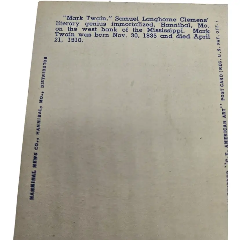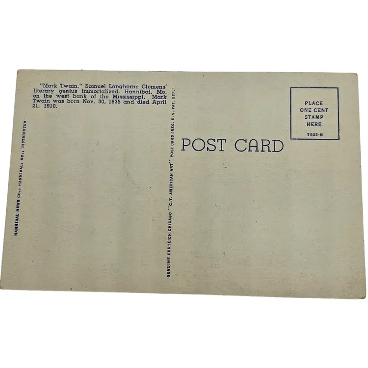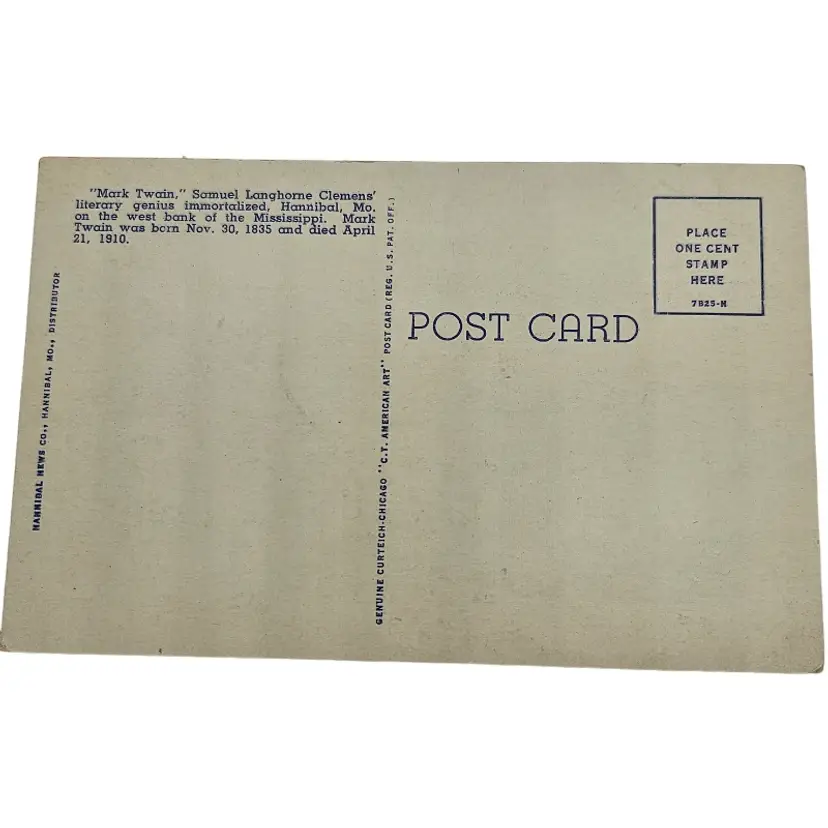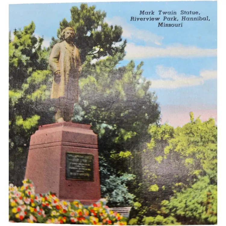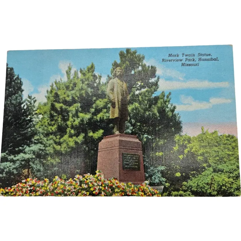 Vintage Unused Postcard of the Mark Twain Statue in Riverview Park, Hannibal, Missouri.