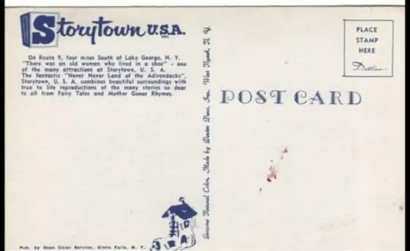 This is a postcard from one of the attractions of Storytown Usa. This was a popular tourist place in the 1950s and 1960s, is no longer there. Now is a 6 Flags Park location.