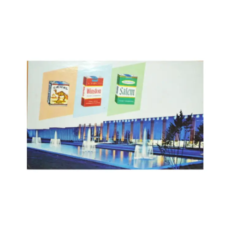 Could this postcard be done today ? 3 major brands of cigarettes prominently pictured.