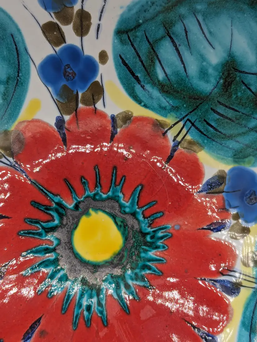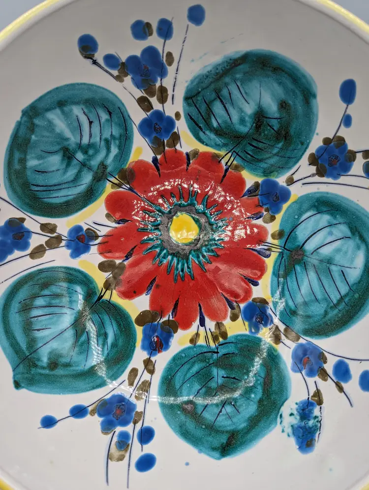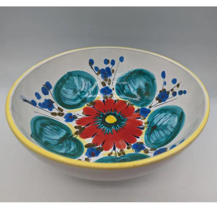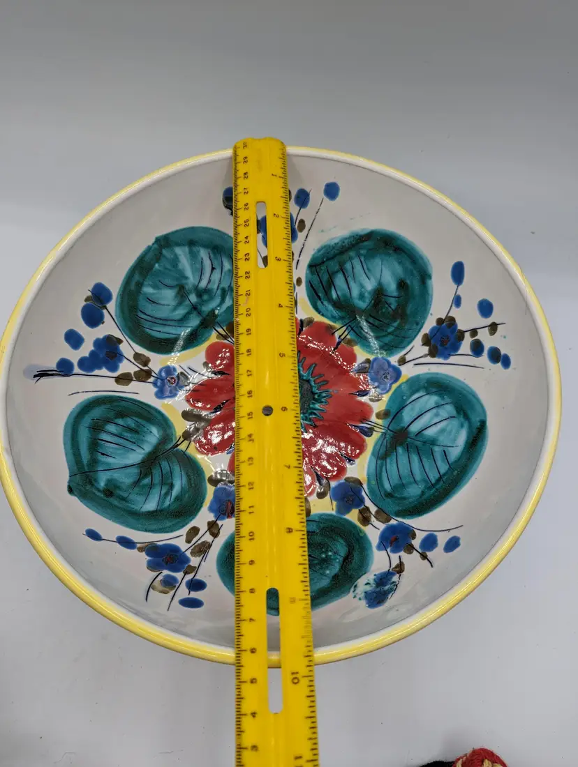 Vintage Italy Large 10" Colorful Flower Art Pottery Bowl. Bowl measures 10 inches in diameter and 4 inches high.