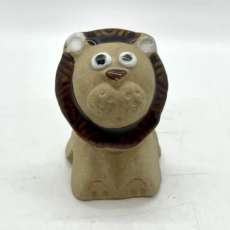 This is a small pottery flower pot sitter. Features a cute lion with a brown mane. No chips or cracks, measures 2" tall.