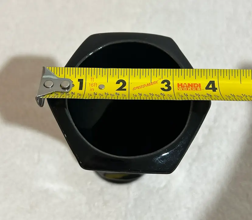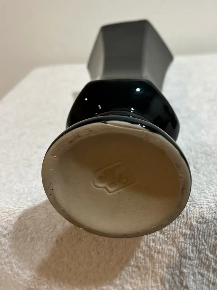 This Studio Pottery Black Paneled Vase is a unique and handmade piece that features a high gloss finish inside and out. Signed by the artist, Stamp is Unknown to me. The Vase also features a handwritten “777” mold pattern next to the Stamp. In flawless condition. Smoke pet free home. 9”x3.75” *browse my collection of collectible vases, vintage, handmade, glass and pottery.