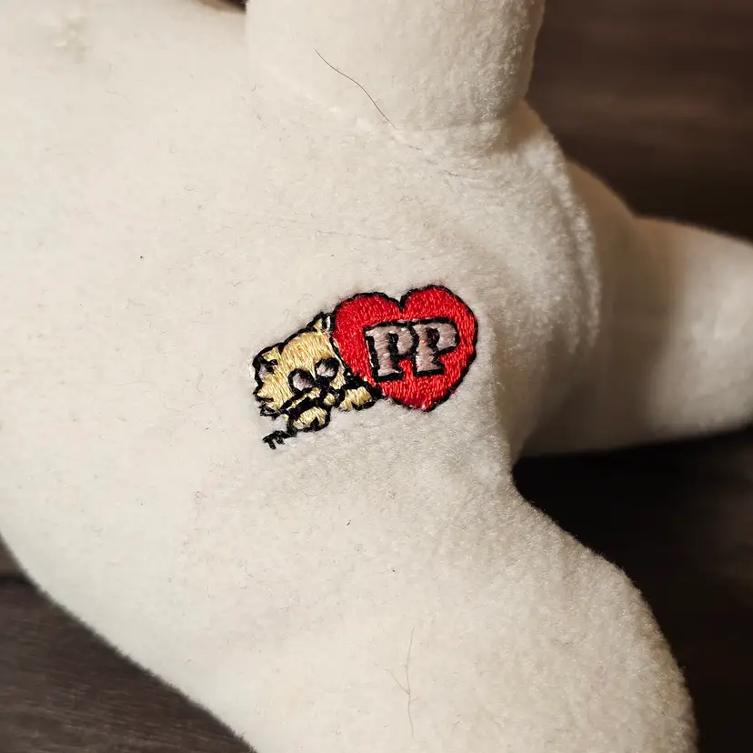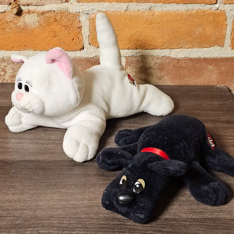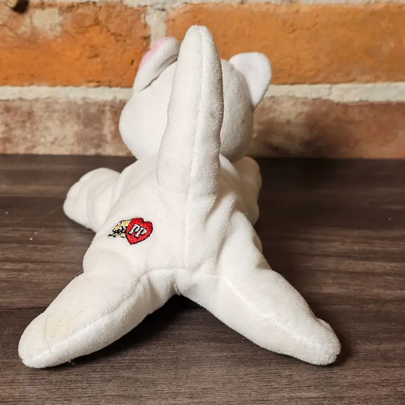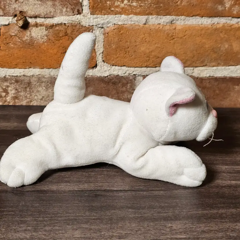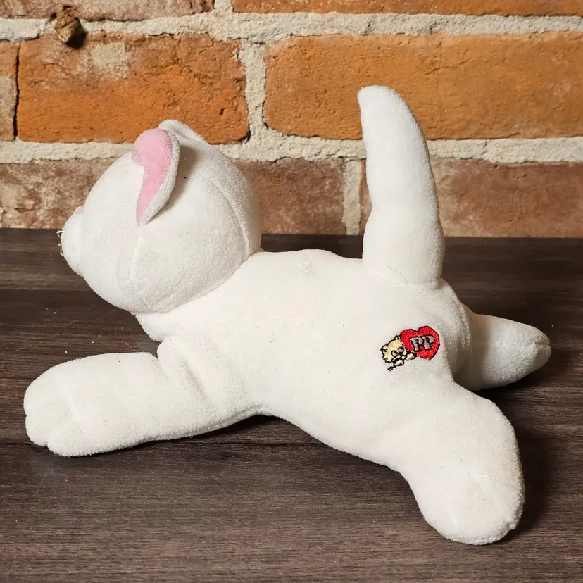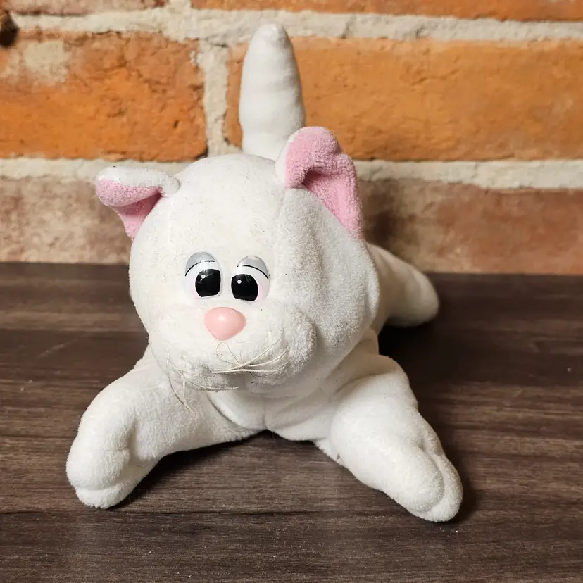 White Cat (Pound Purry): Features soft white plush, pink inner ears, a pink nose, and embroidered "sleepy" eyes.