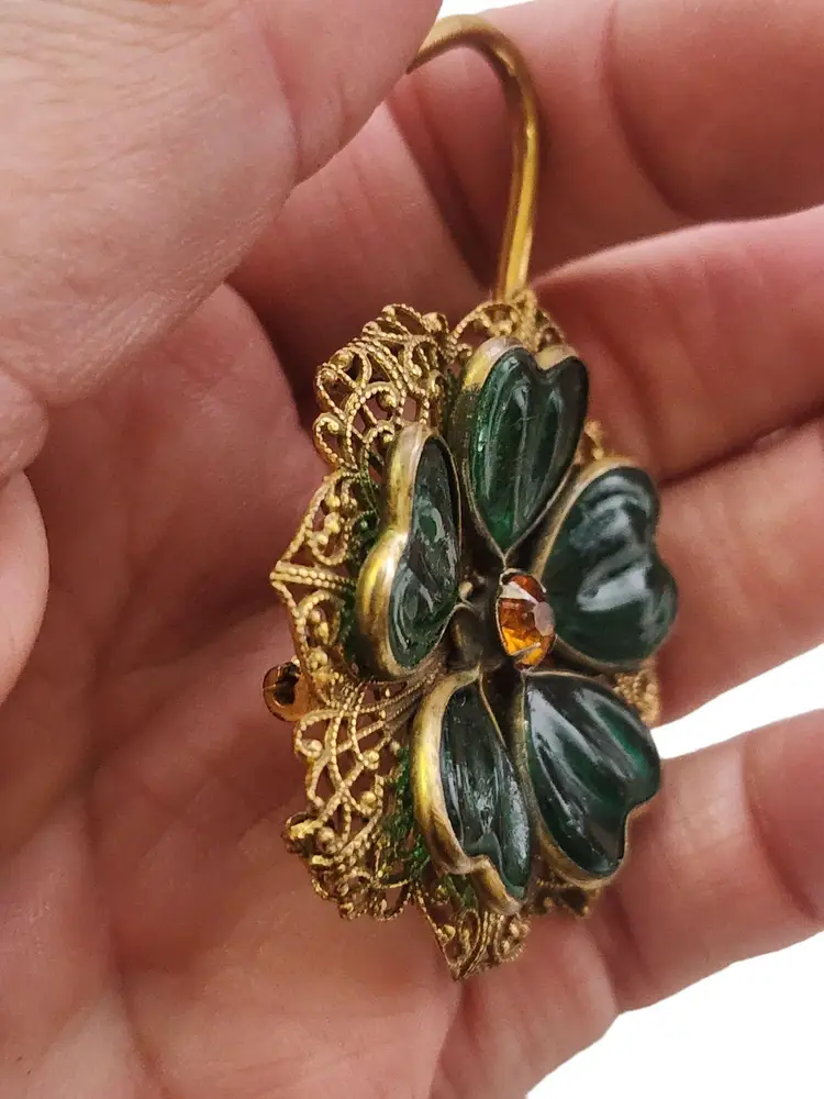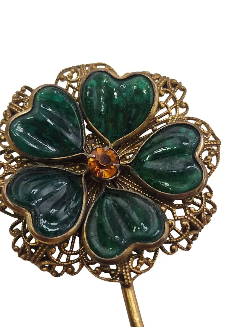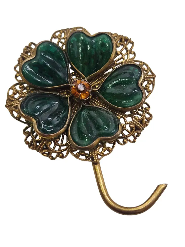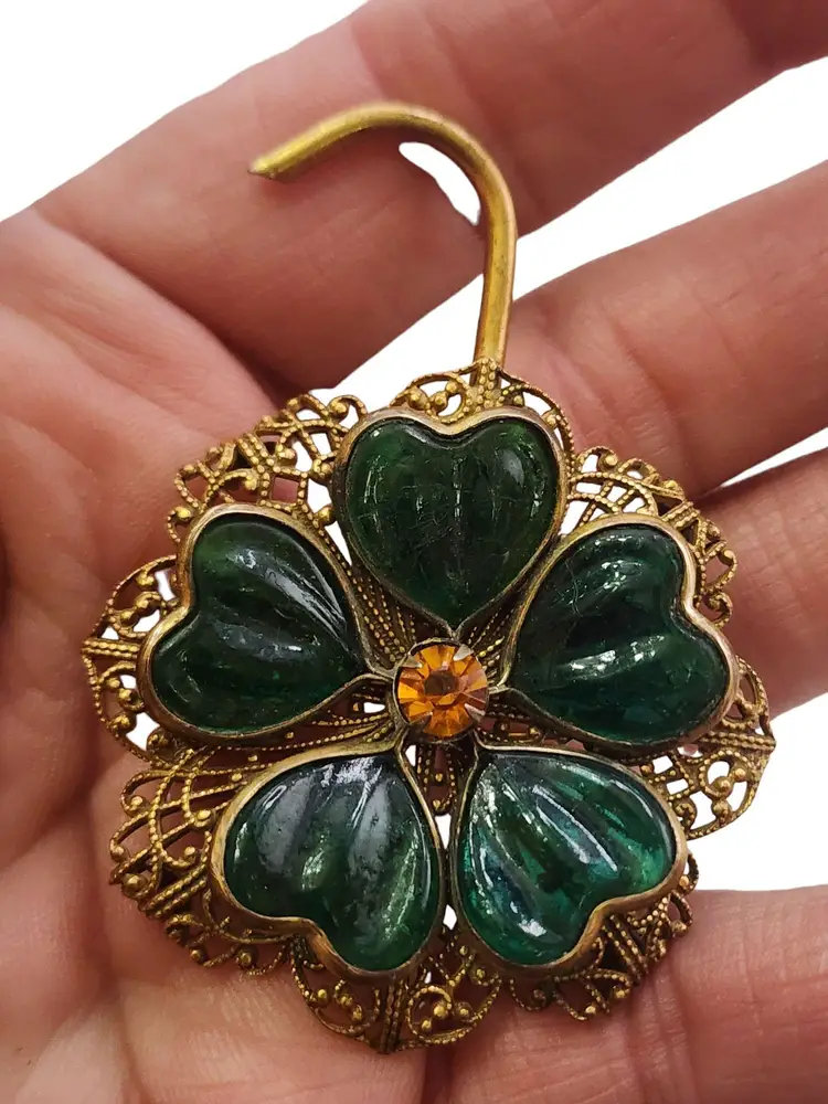 Vintage Poured Glass 5 Leaf Clover Brooch (A3927)