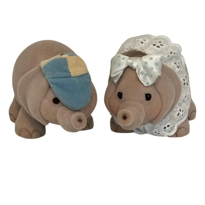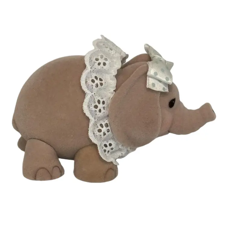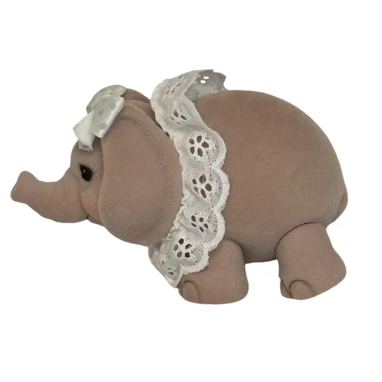 This is a pair of flocked elephants from the Precious Moments Noah's Ark. They measure approximately 4 1/8" L x 2 1/4" W x 2 1/2" H. They are in wonderful condition with no rips or tears. Please see photos and feel free to contact me with any questions. Thank you.