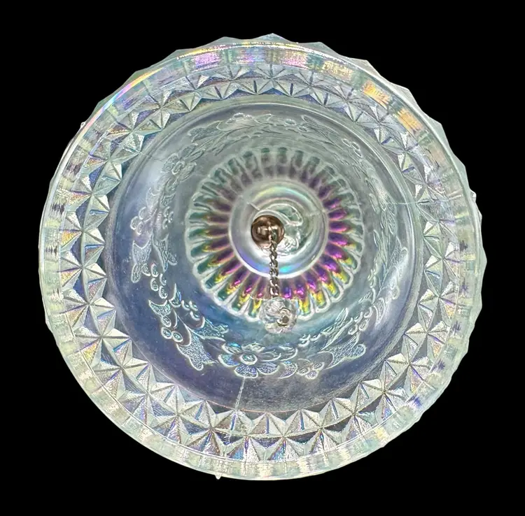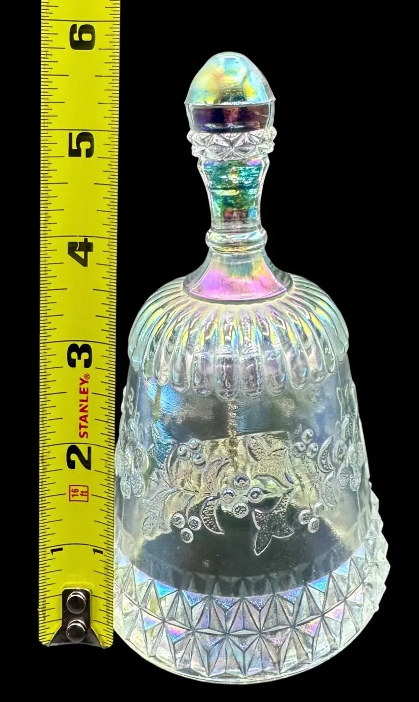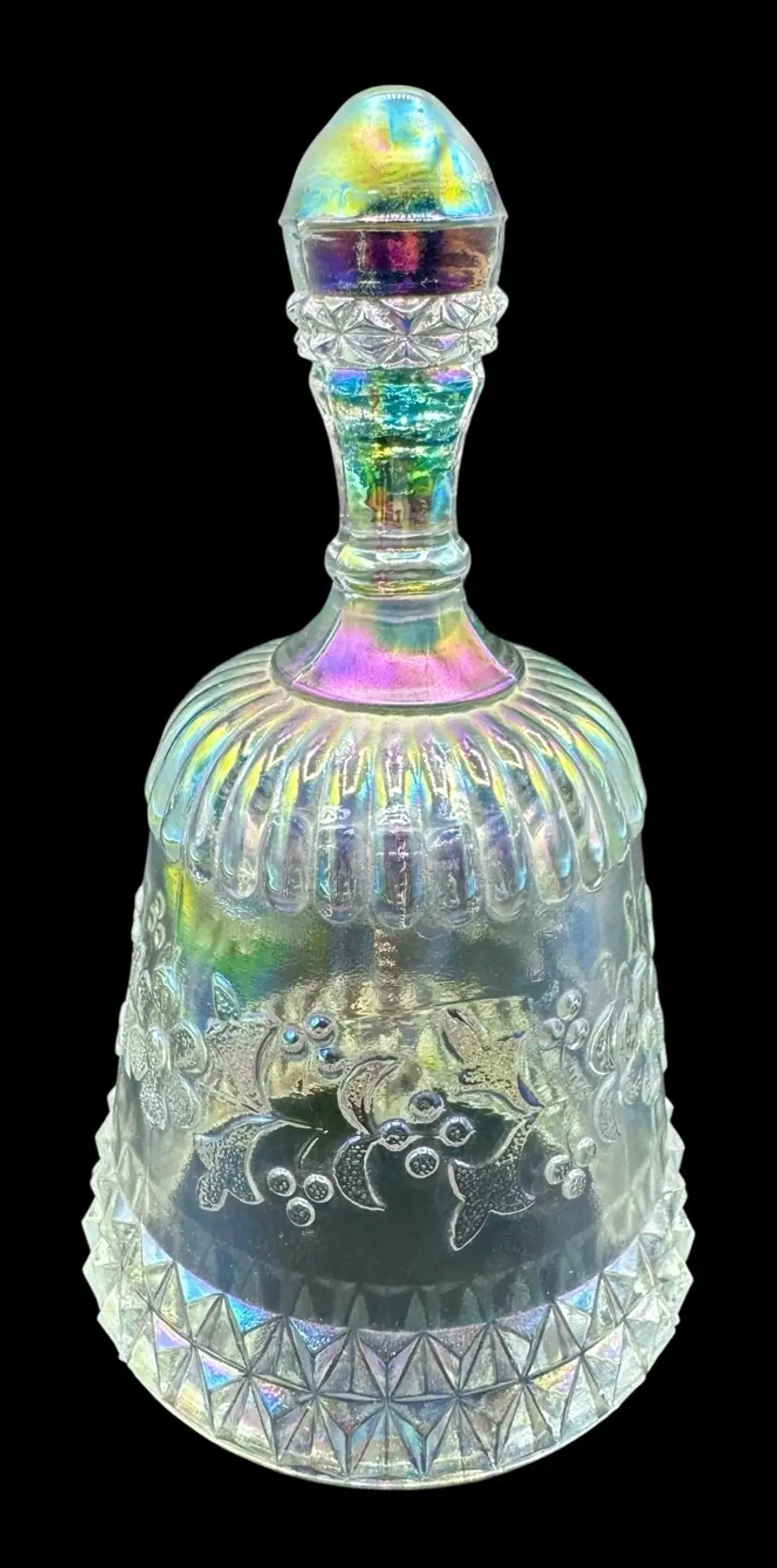 Iridescent glass bell from an unknown maker, possible Imperial or Fenton.