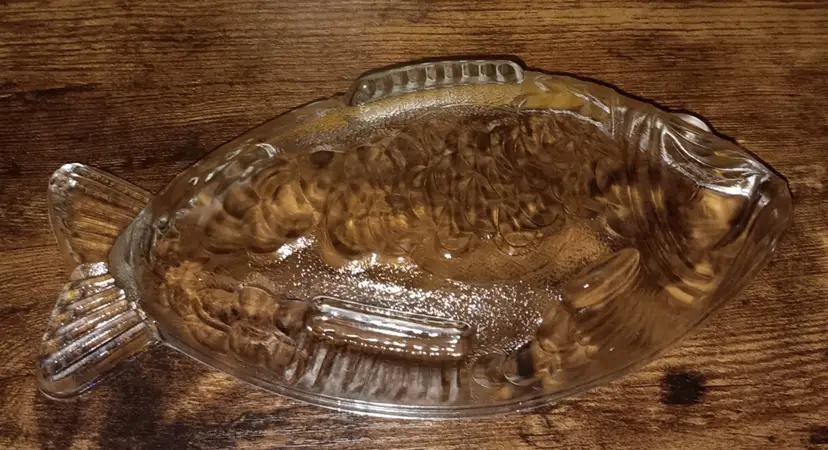 Vintage Pressed Glass Fish Serving or Trinket Dish. Excellent condition. It measures 9x4 inches.