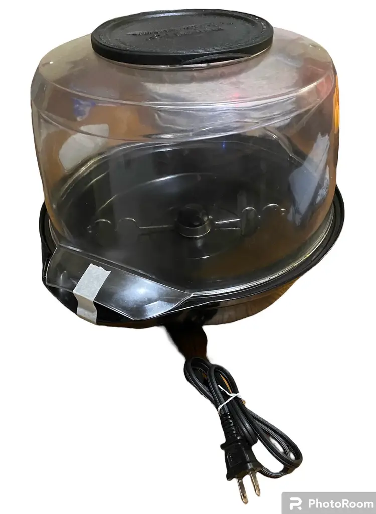 Really cool vintage Presto Stirring Popper popcorn machine, in nice pre owned condition. Functions as it should, normal wear for the age, clear plastic lid has a crack in it, does not affect its functionality. Neat addition to any kitchen to make movie night that much more special!