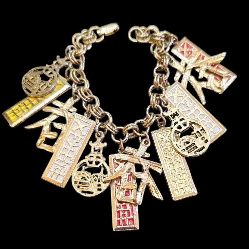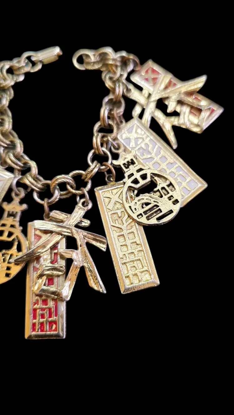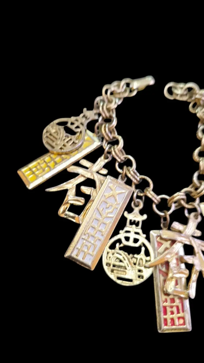 Vintage Probably Art Asian Charm Bracelet (A7974)