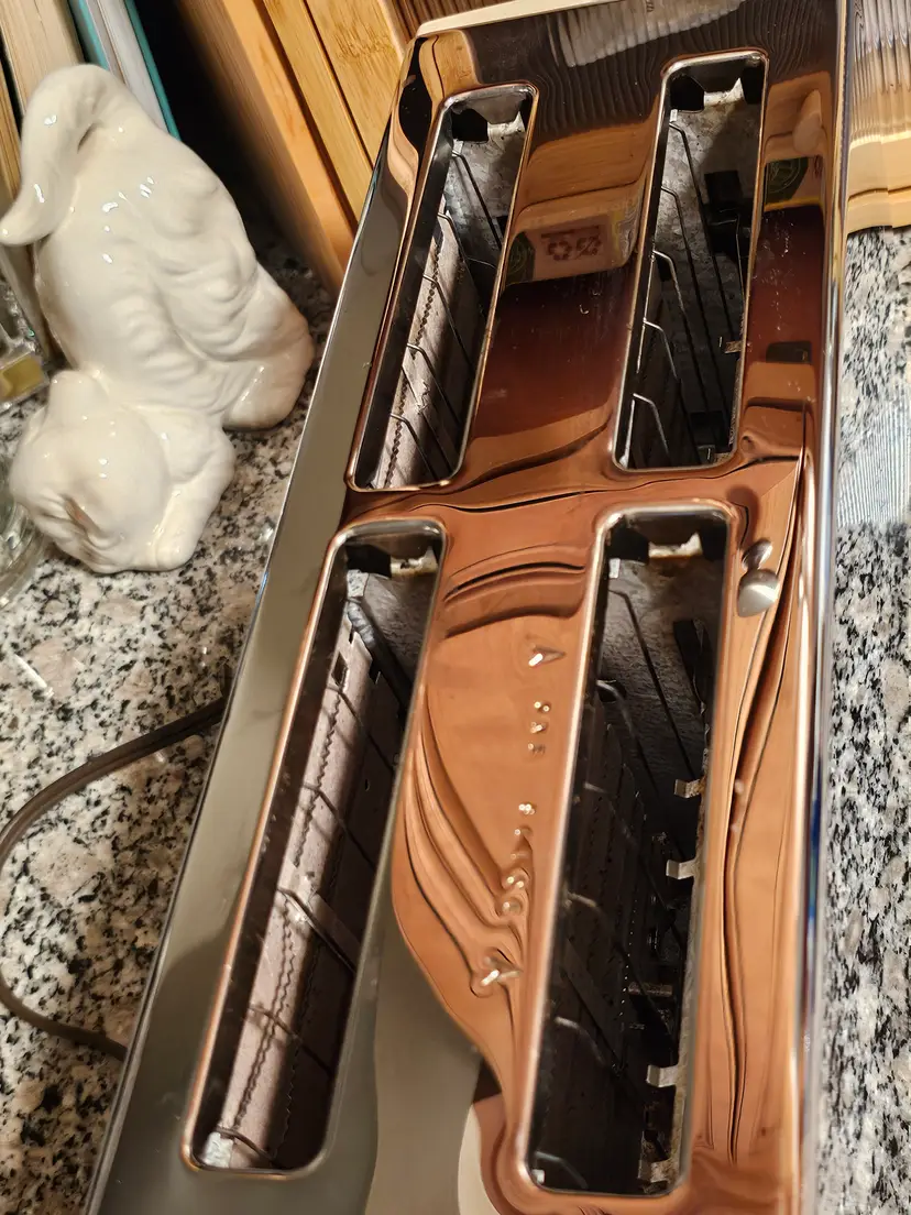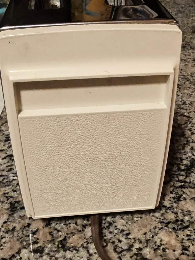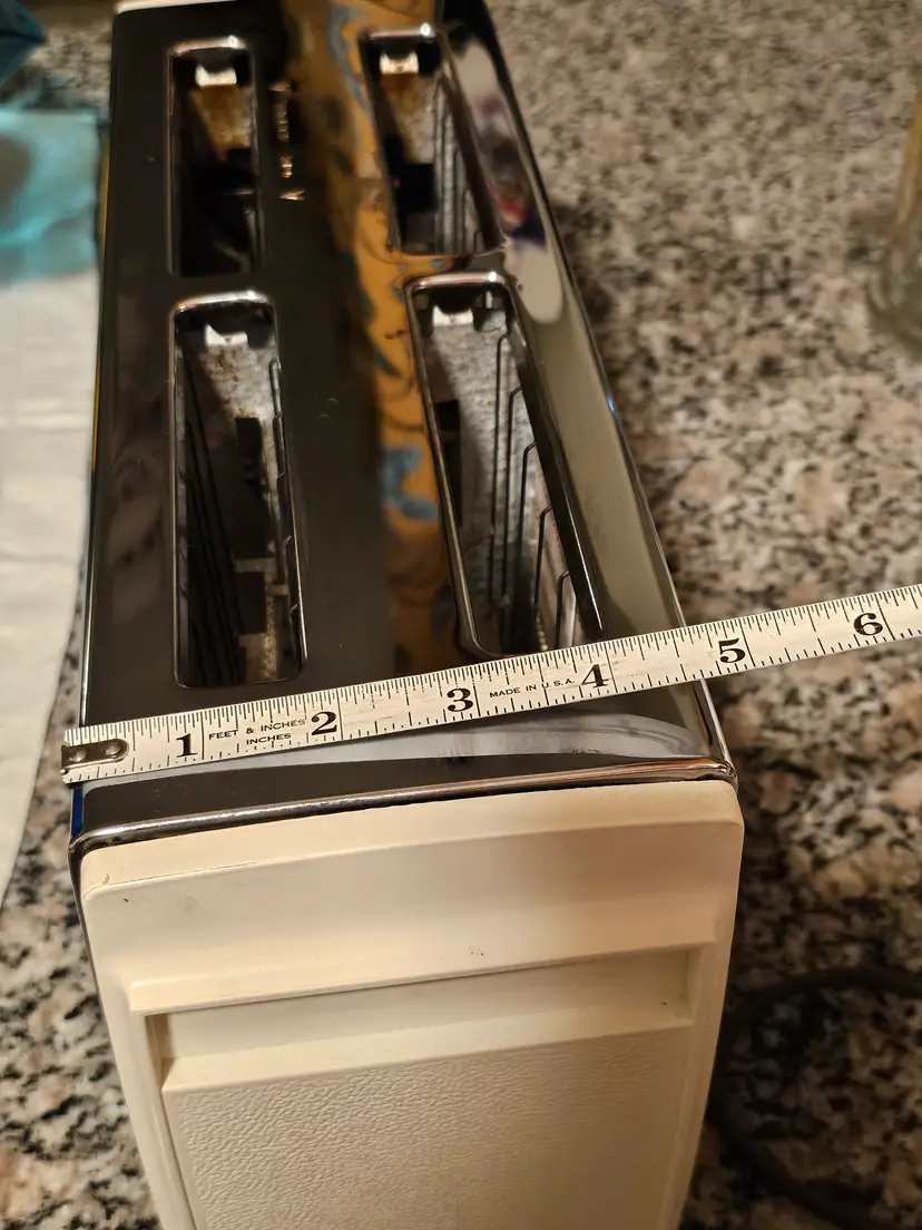 This fabulous retro toaster is in EXCELLENT CONDITION for its age. Chrome is like a mirror. I pointed at the sides so you could see how nice it is. Measurements are in pics. Works great!