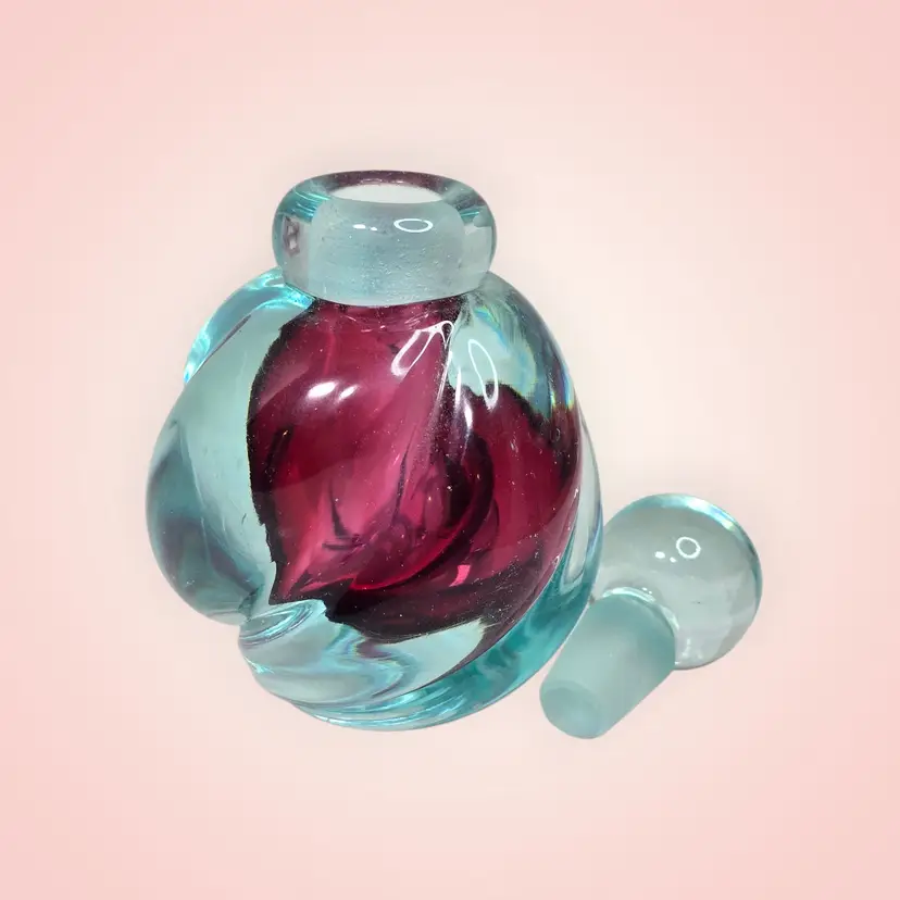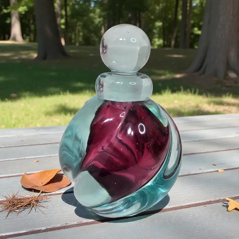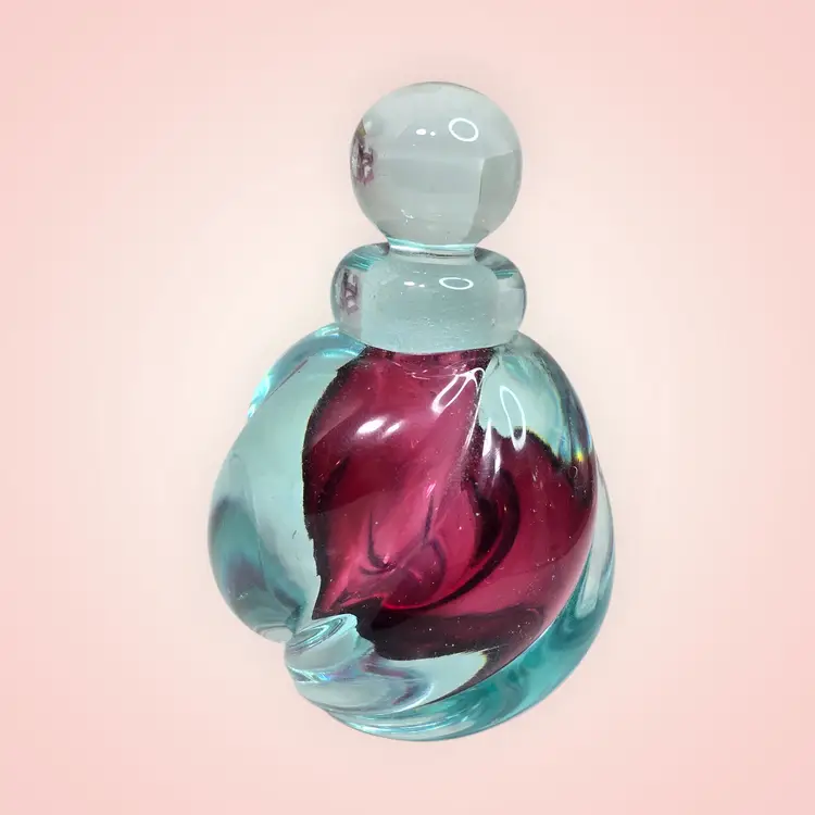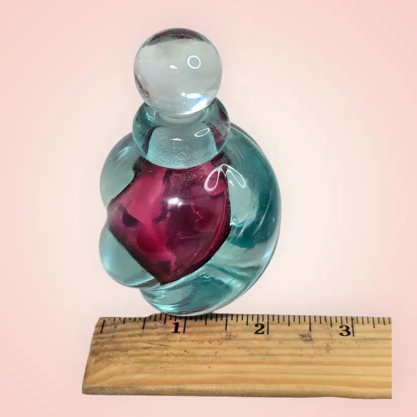 Vintage Purple And Blue Swirl Art Glass Perfume Bottle