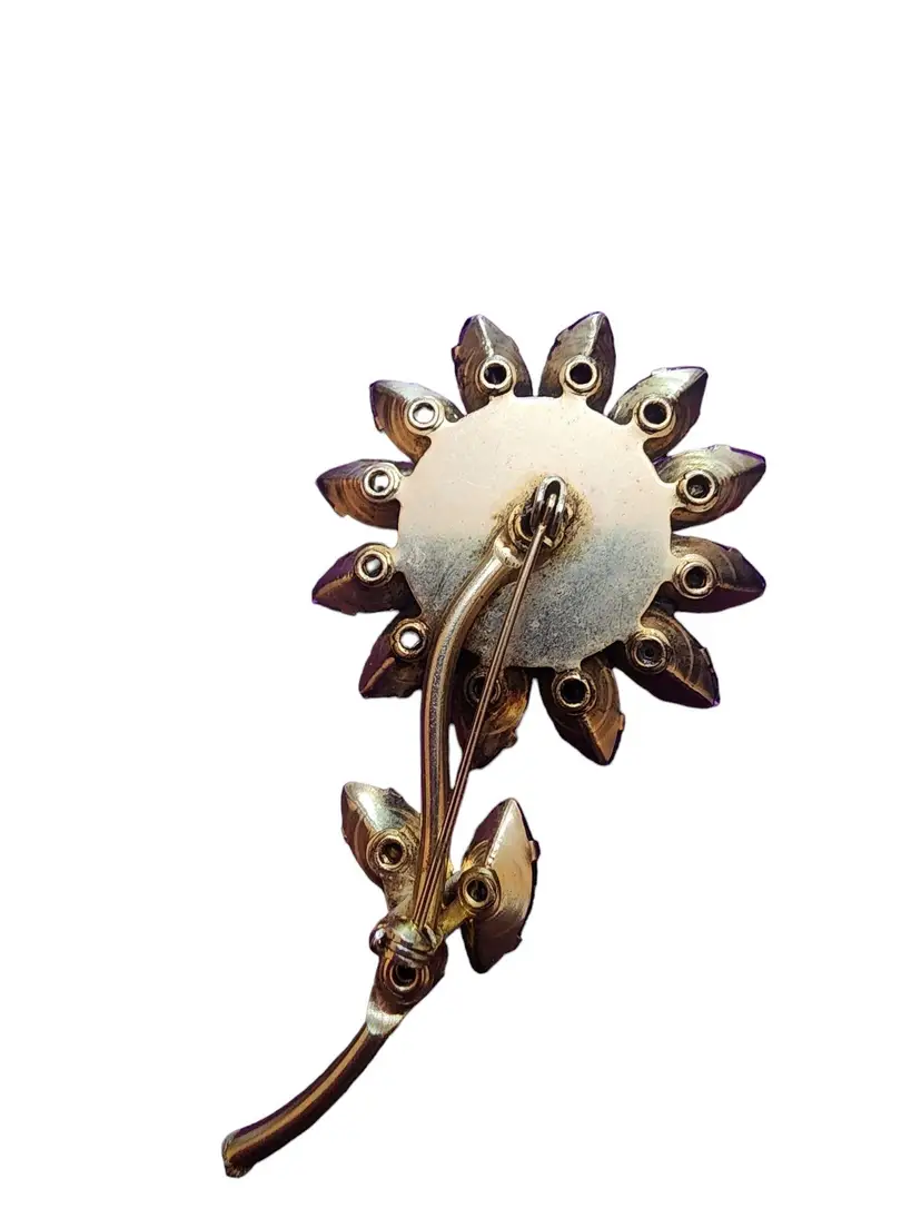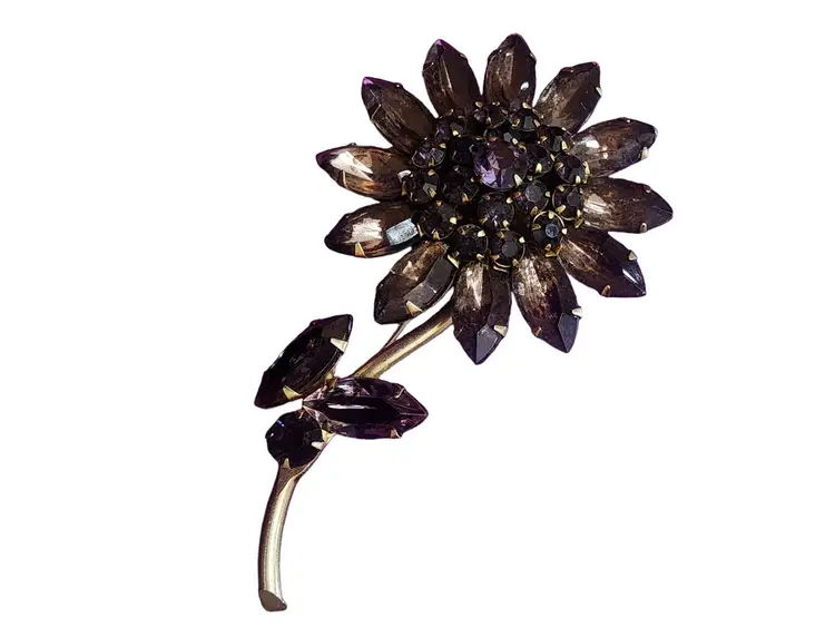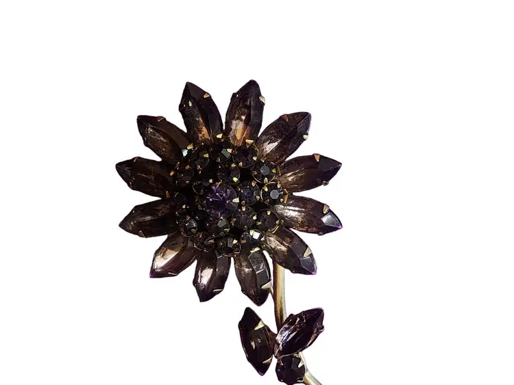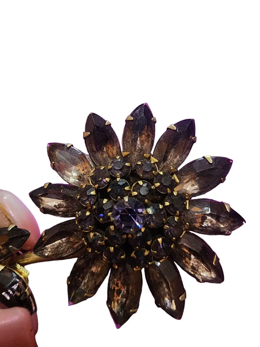Vintage Purple Glass Riveted Rhinestone Flower Brooch (A4051)